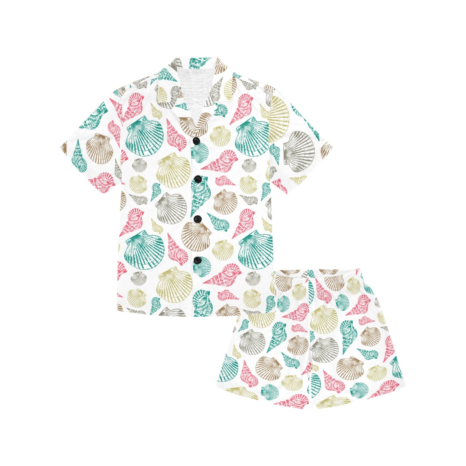 Colorful shell pattern Kids' Boys' Girls' V-Neck Short Pajama Set