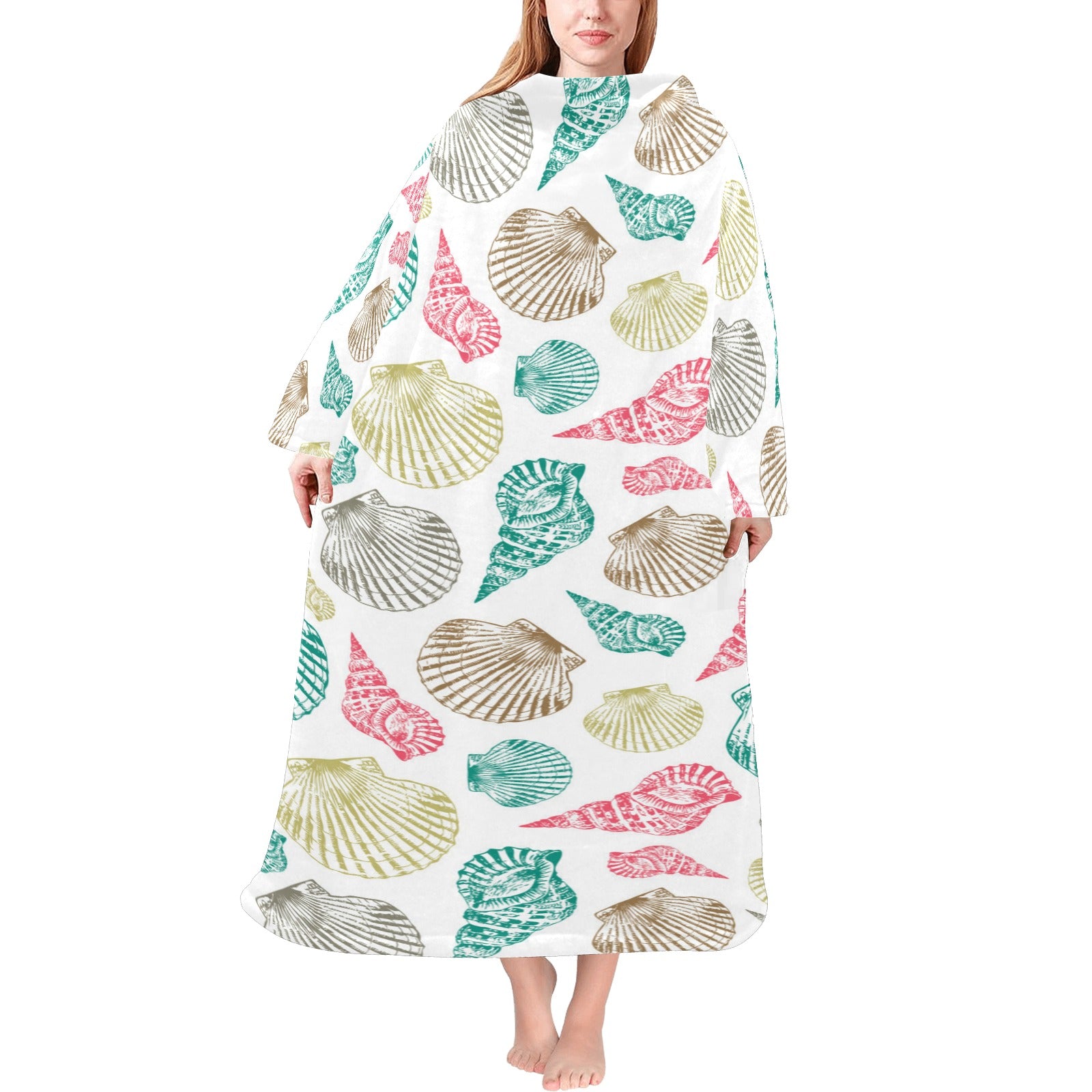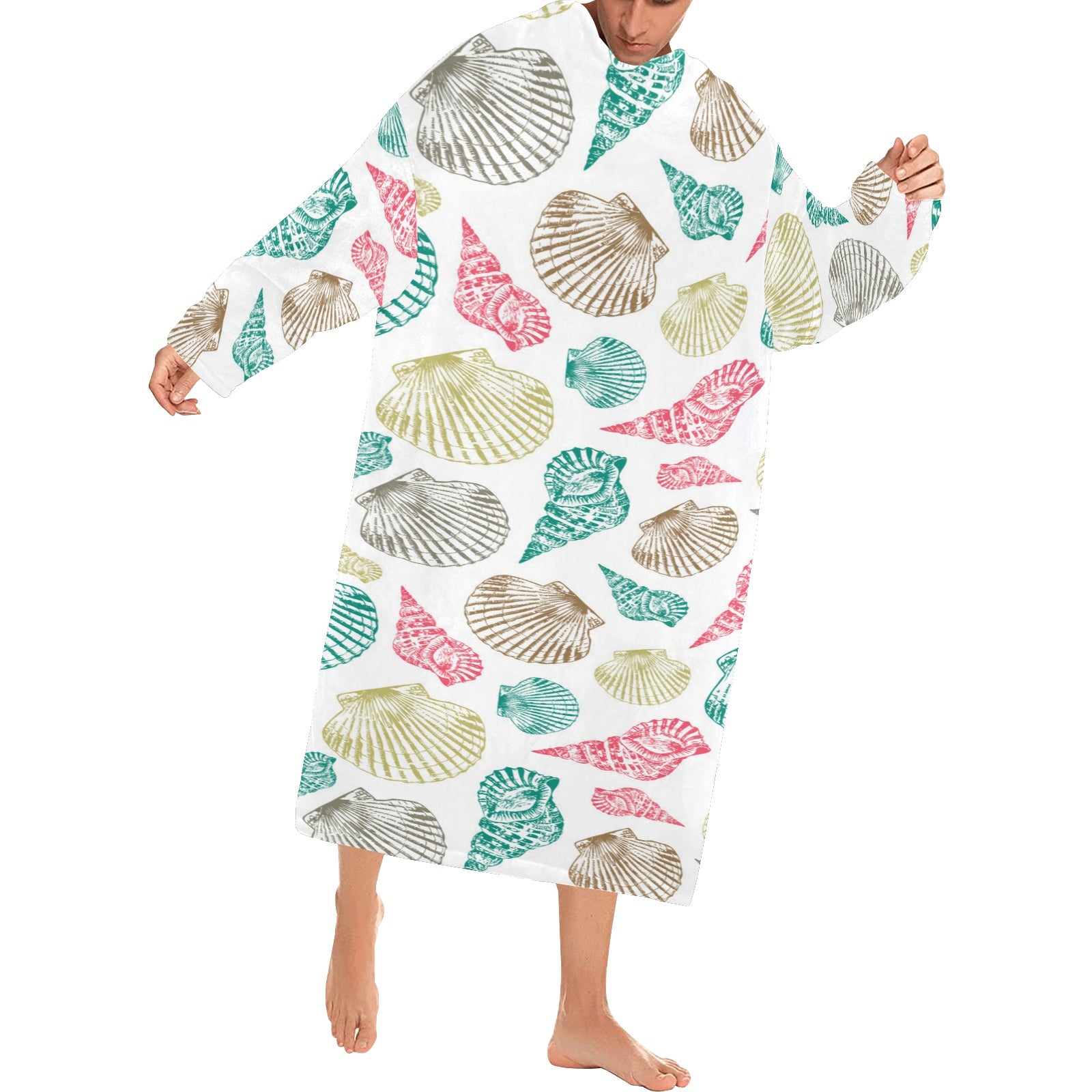 Colorful shell pattern Blanket Robe with Sleeves