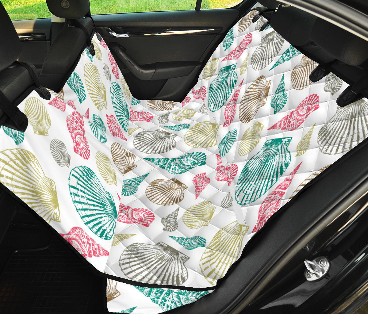 Colorful shell pattern Dog Car Seat Covers is a uniqued design and limited item. It made to order, hand printed, and sewn with love in our factory.