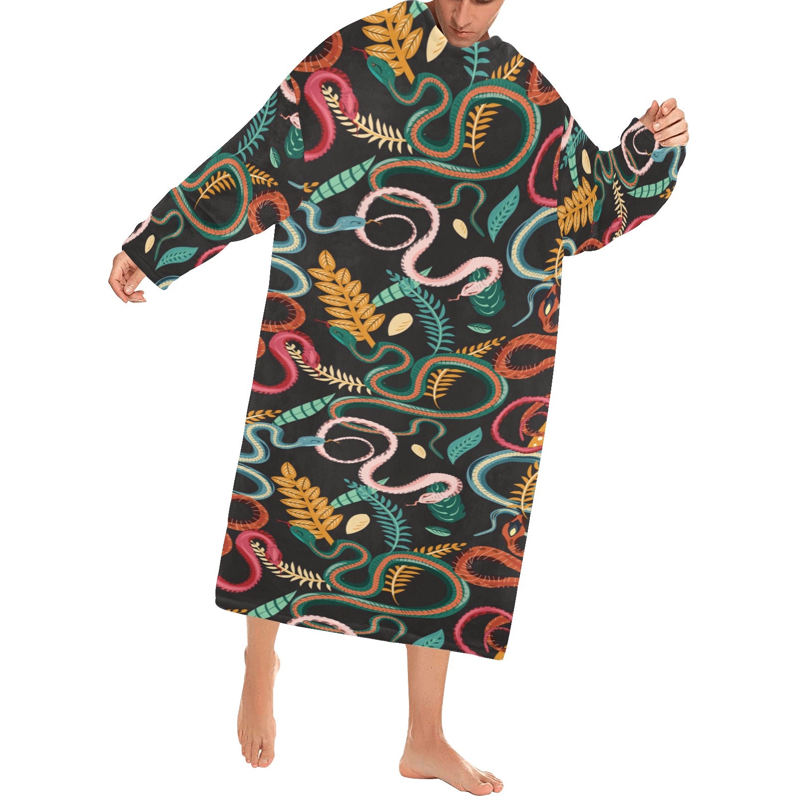 Colorful snake plant pattern Blanket Robe with Sleeves