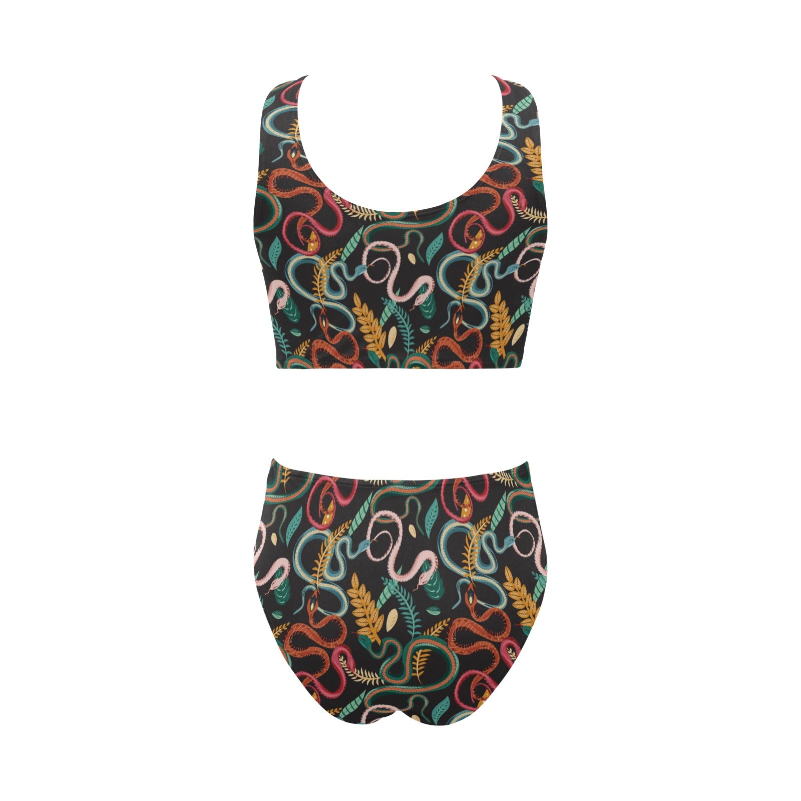 Colorful snake plant pattern Chest Bowknot High Waisted Bikini Swimsuit
