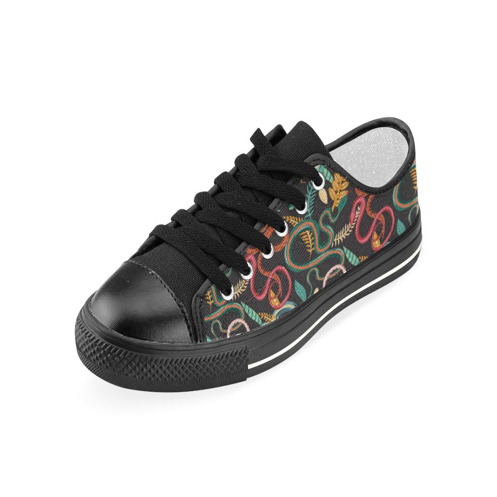 Colorful snake plant pattern Kids' Boys' Girls' Low Top Canvas Shoes Black