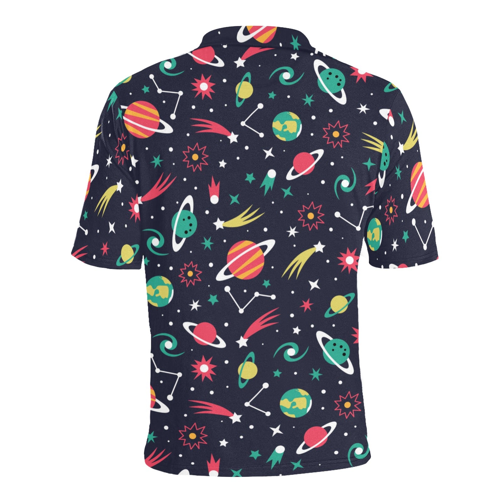 colorful space pattern planet star Men's All Over Print Polo Shirt
