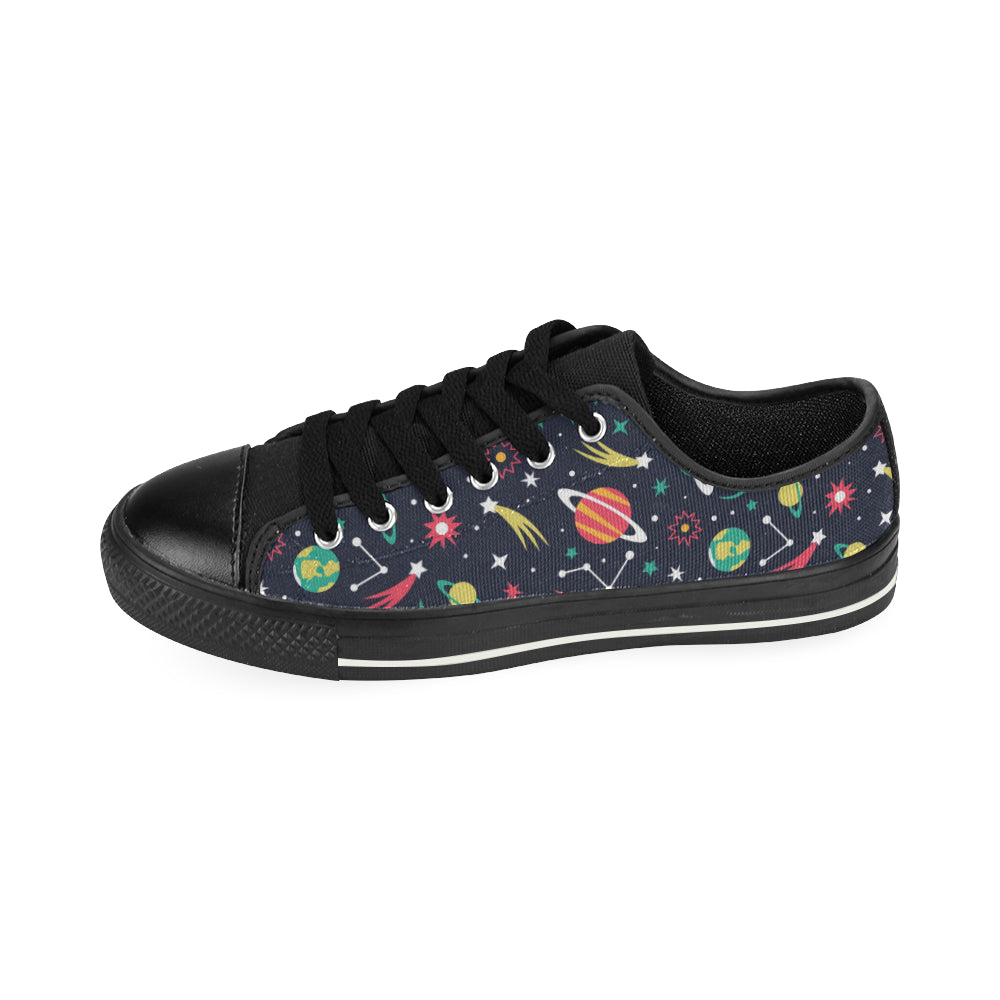 colorful space pattern planet star Men's Low Top Canvas Shoes Black