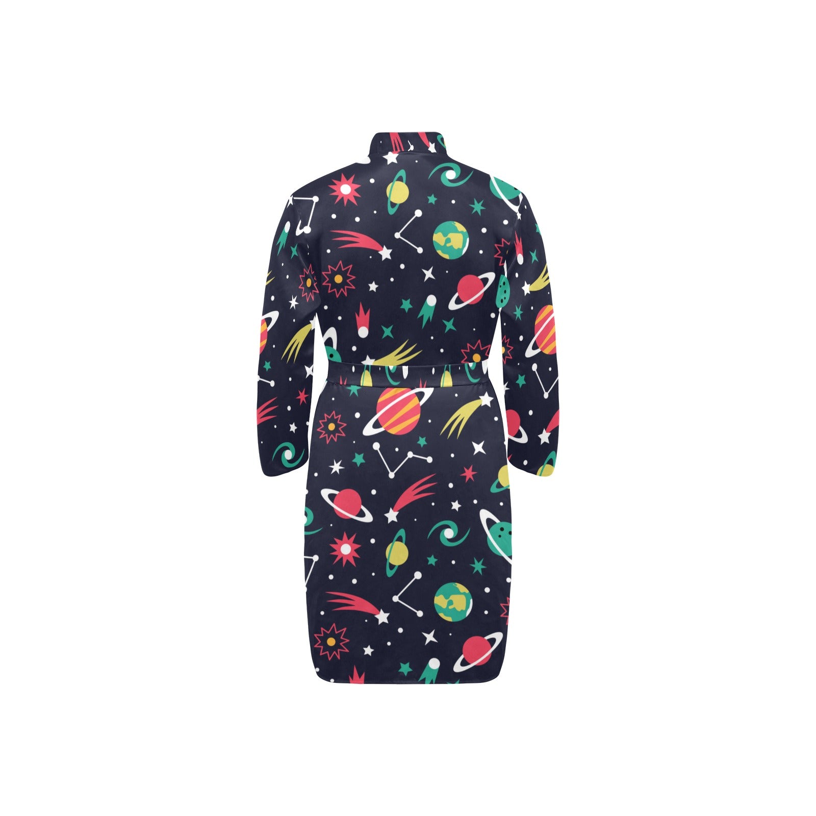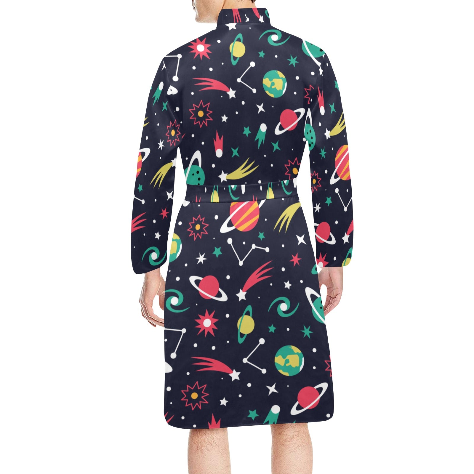 colorful space pattern planet star Men's Long Sleeve Belted Night Robe