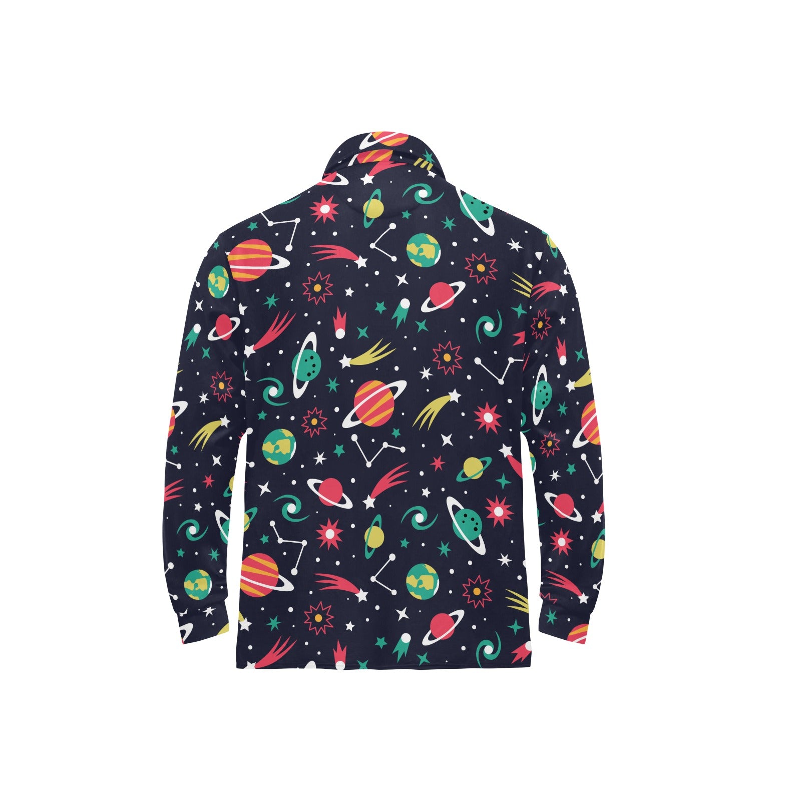 colorful space pattern planet star Men's Long Sleeve Polo Shirt