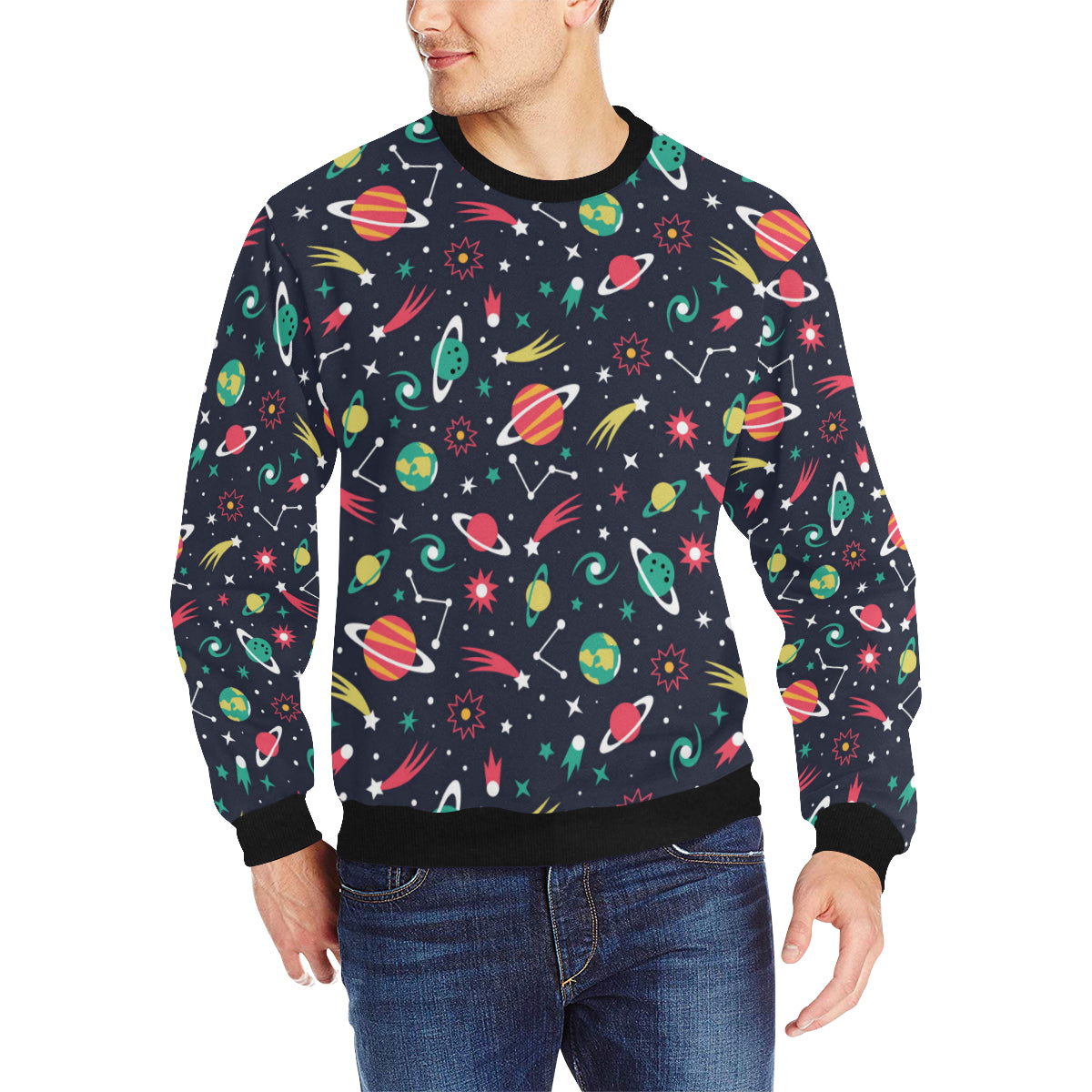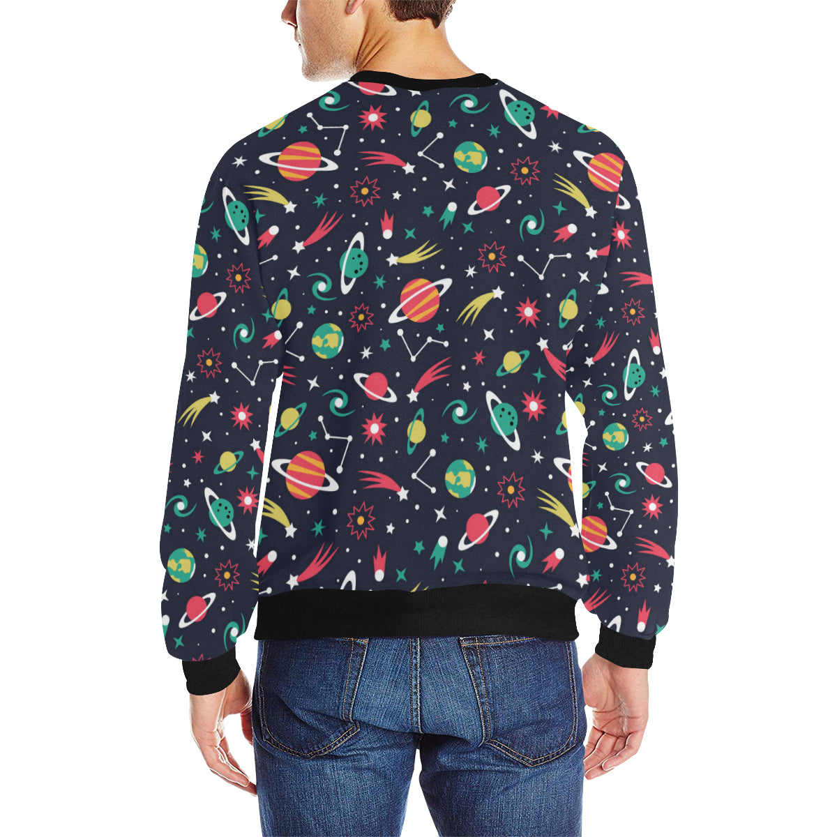 colorful space pattern planet star Men's Crew Neck Sweatshirt