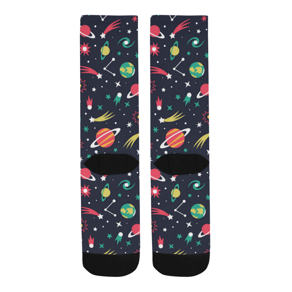 colorful space pattern planet star Crew Socks