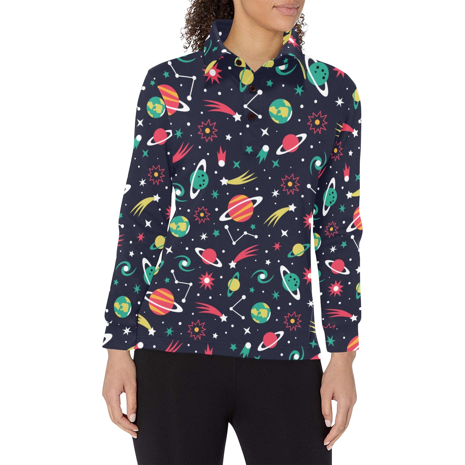 colorful space pattern planet star Women's Long Sleeve Polo Shirt