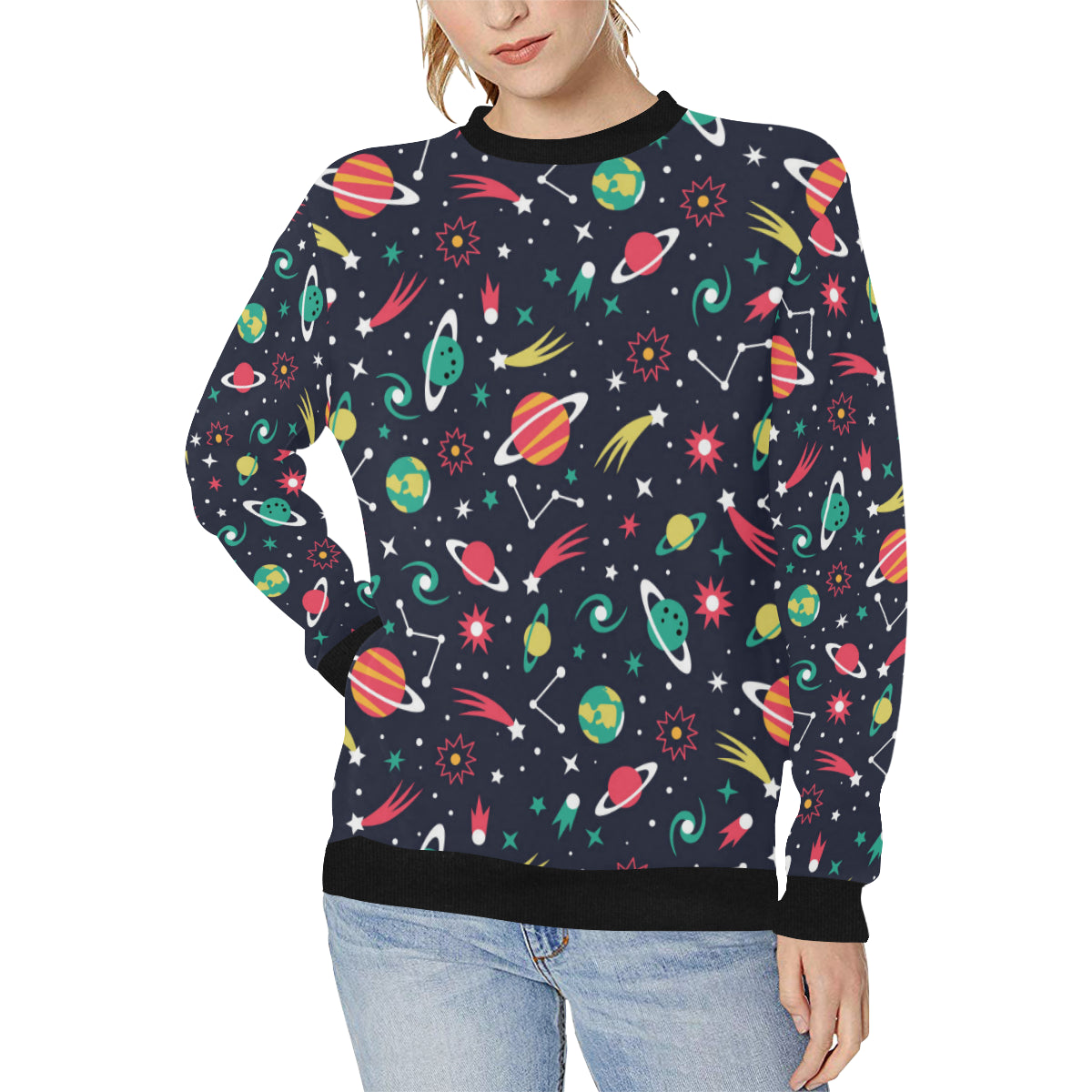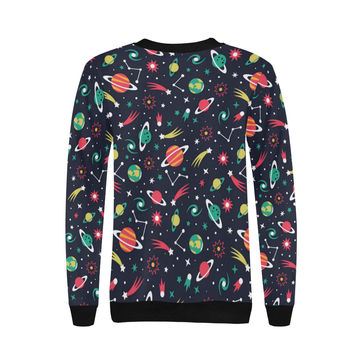 colorful space pattern planet star Women's Crew Neck Sweatshirt