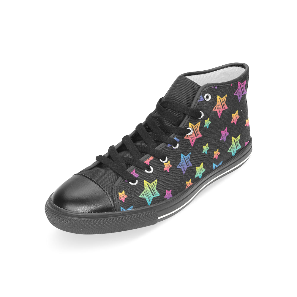 Colorful star pattern Women's High Top Canvas Shoes Black