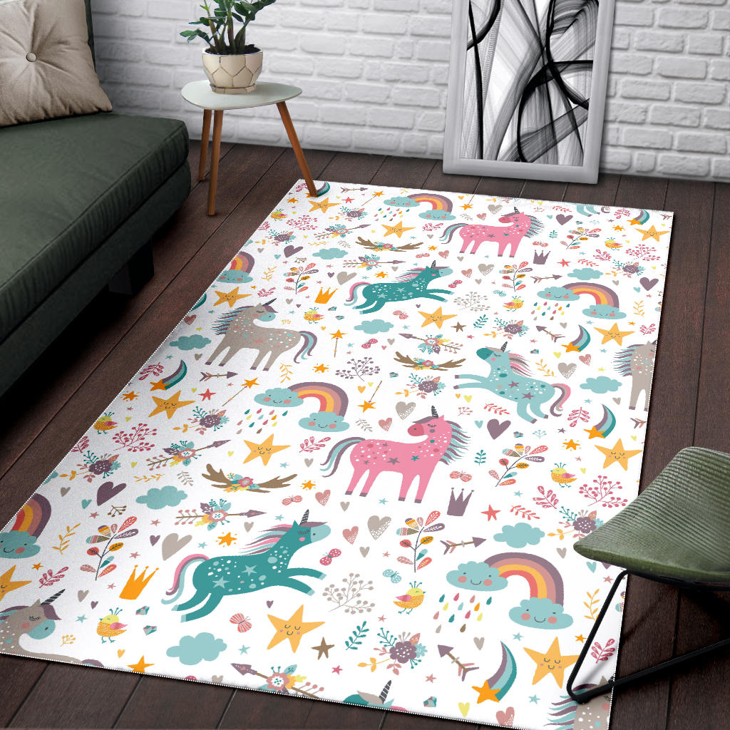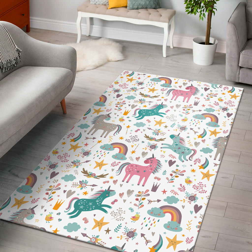 Colorful unicorn pattern Area Rug is a uniqued design and limited item. It made to order, hand printed, and sewn with love in our factory.