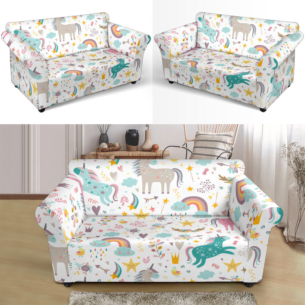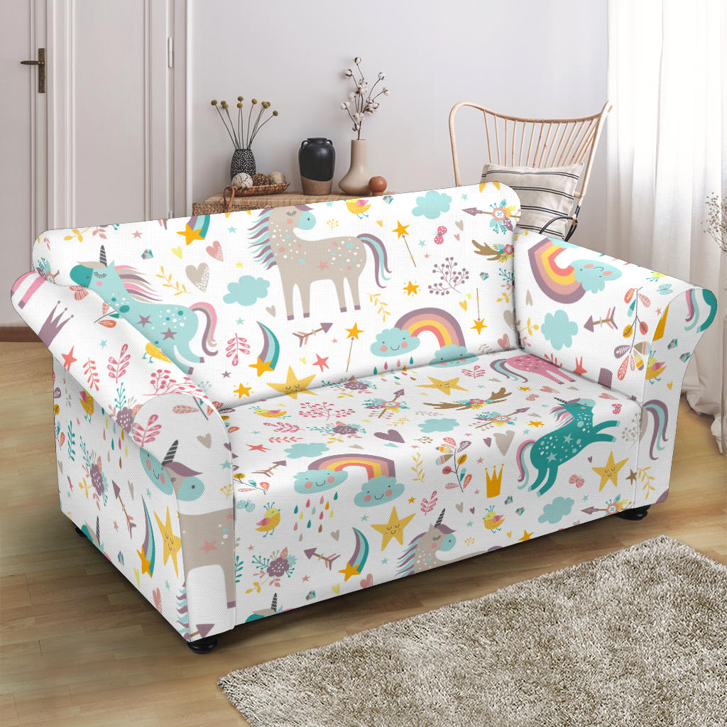 Colorful Unicorn Pattern Loveseat Couch Slipcover
