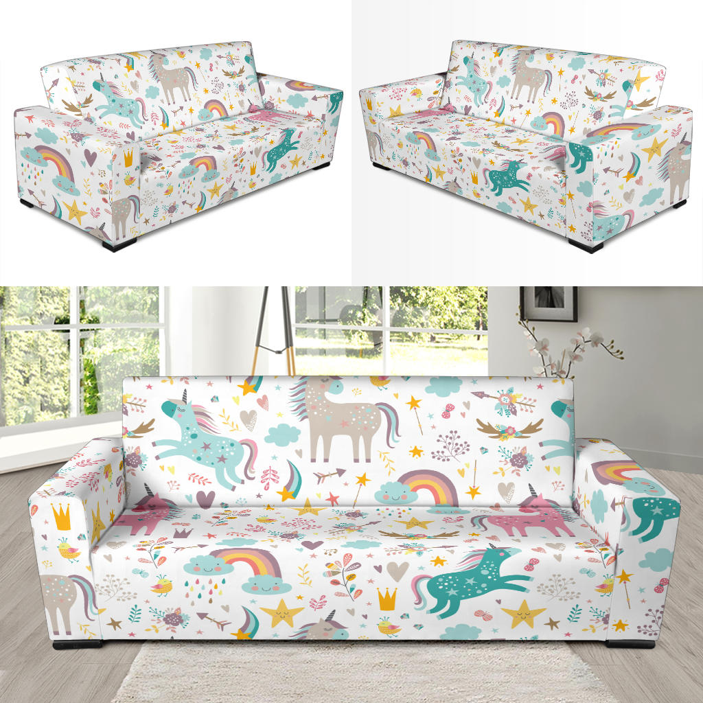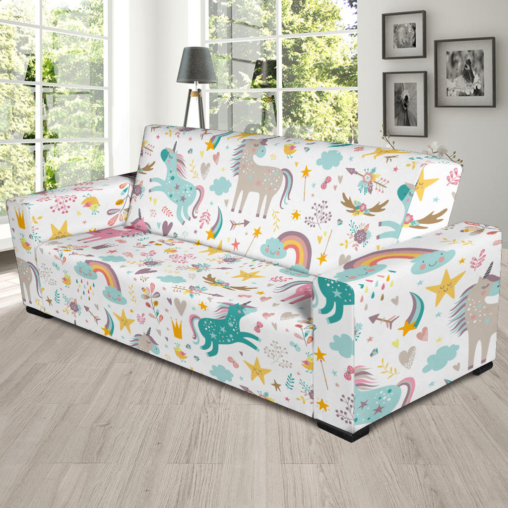 Colorful unicorn pattern Sofa Slipcover is a uniqued design and limited item. It made to order, hand printed, and sewn with love in our factory.