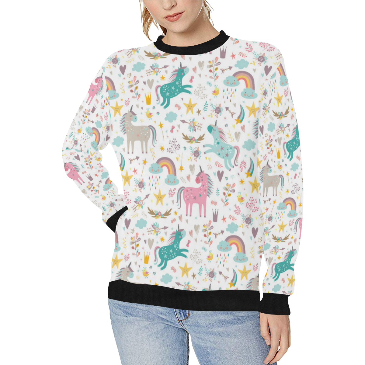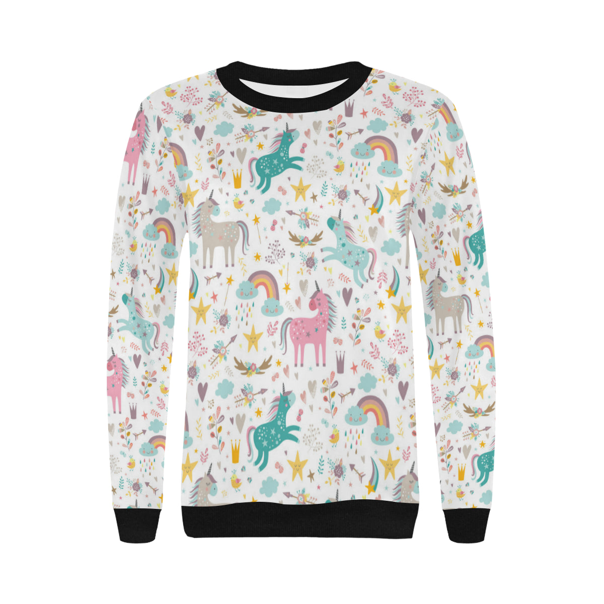 Colorful unicorn pattern Women's Crew Neck Sweatshirt is a uniqued design and limited item. It made to order, hand printed, and sewn with love in our factory.
