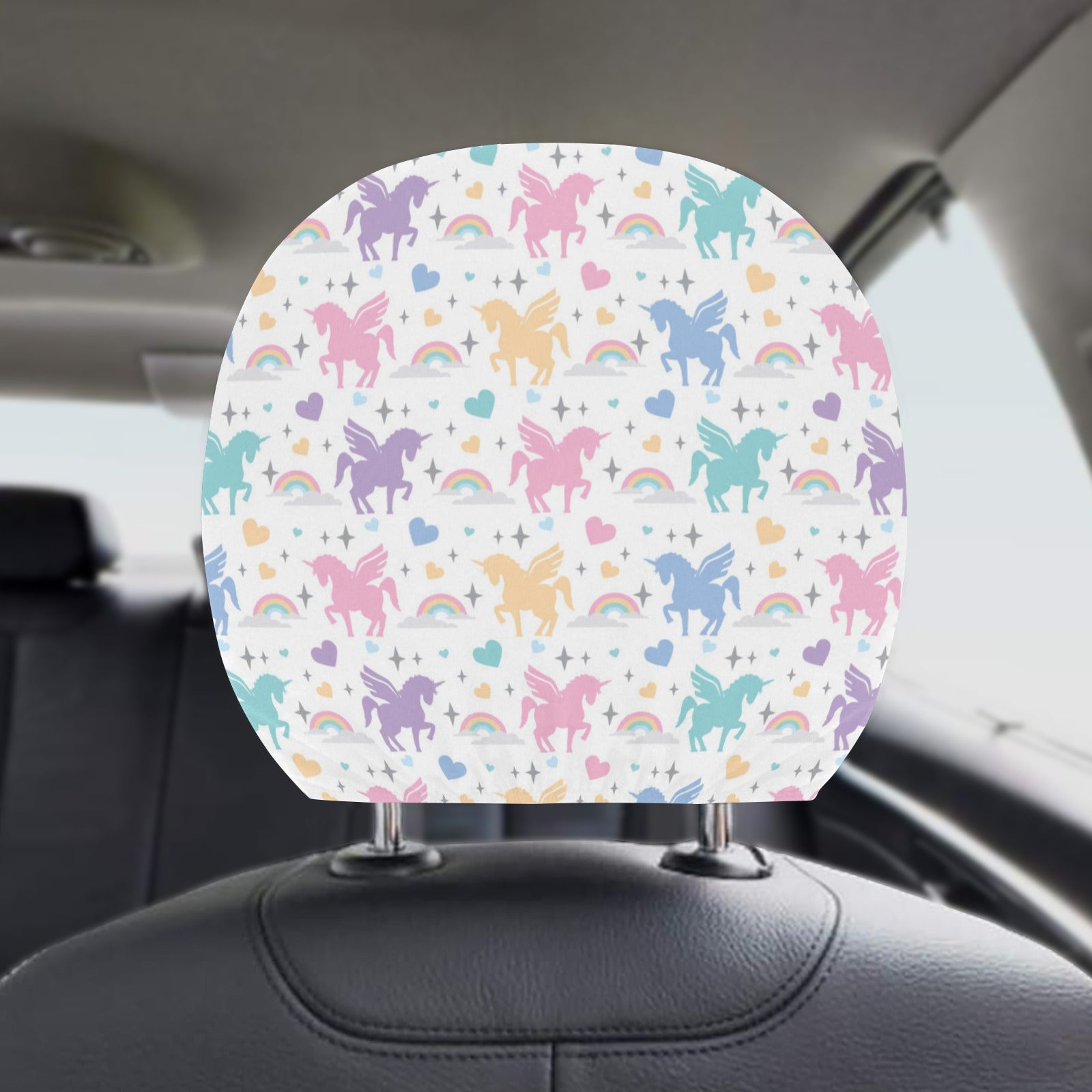 colorful unicorn rainbow heart pattern Car Headrest Cover