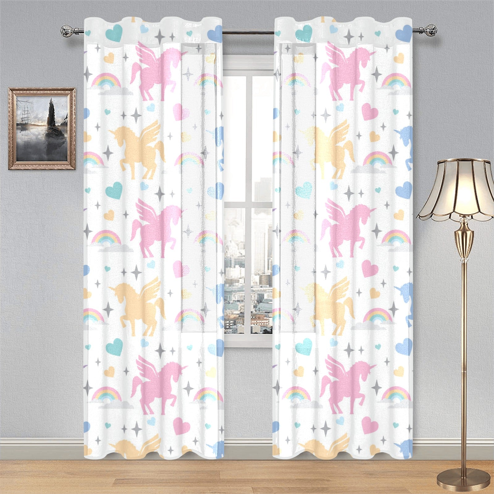 colorful unicorn rainbow heart pattern Gauze Curtain