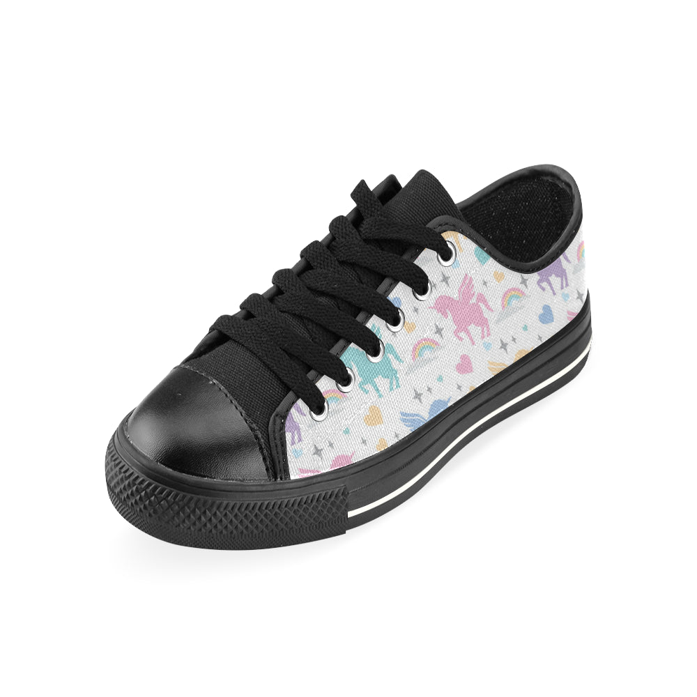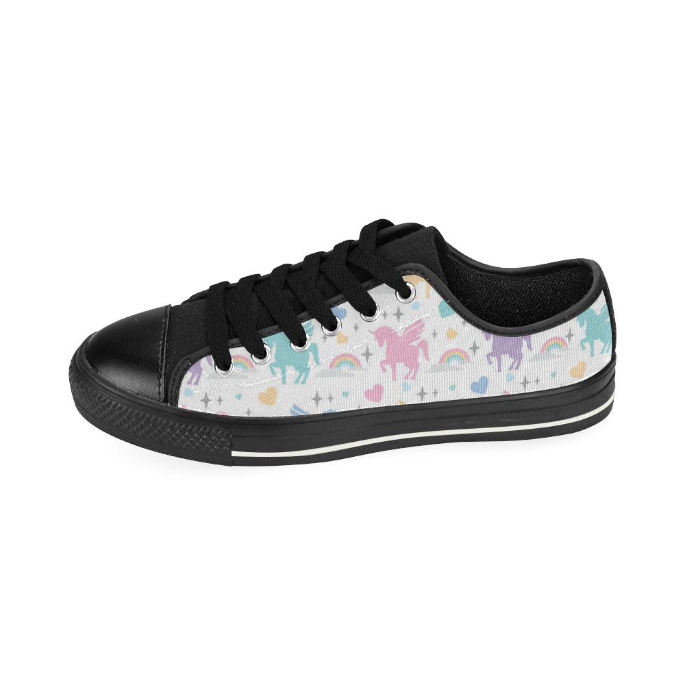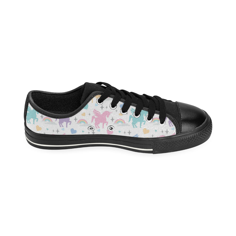 colorful unicorn rainbow heart pattern Men's Low Top Canvas Shoes Black