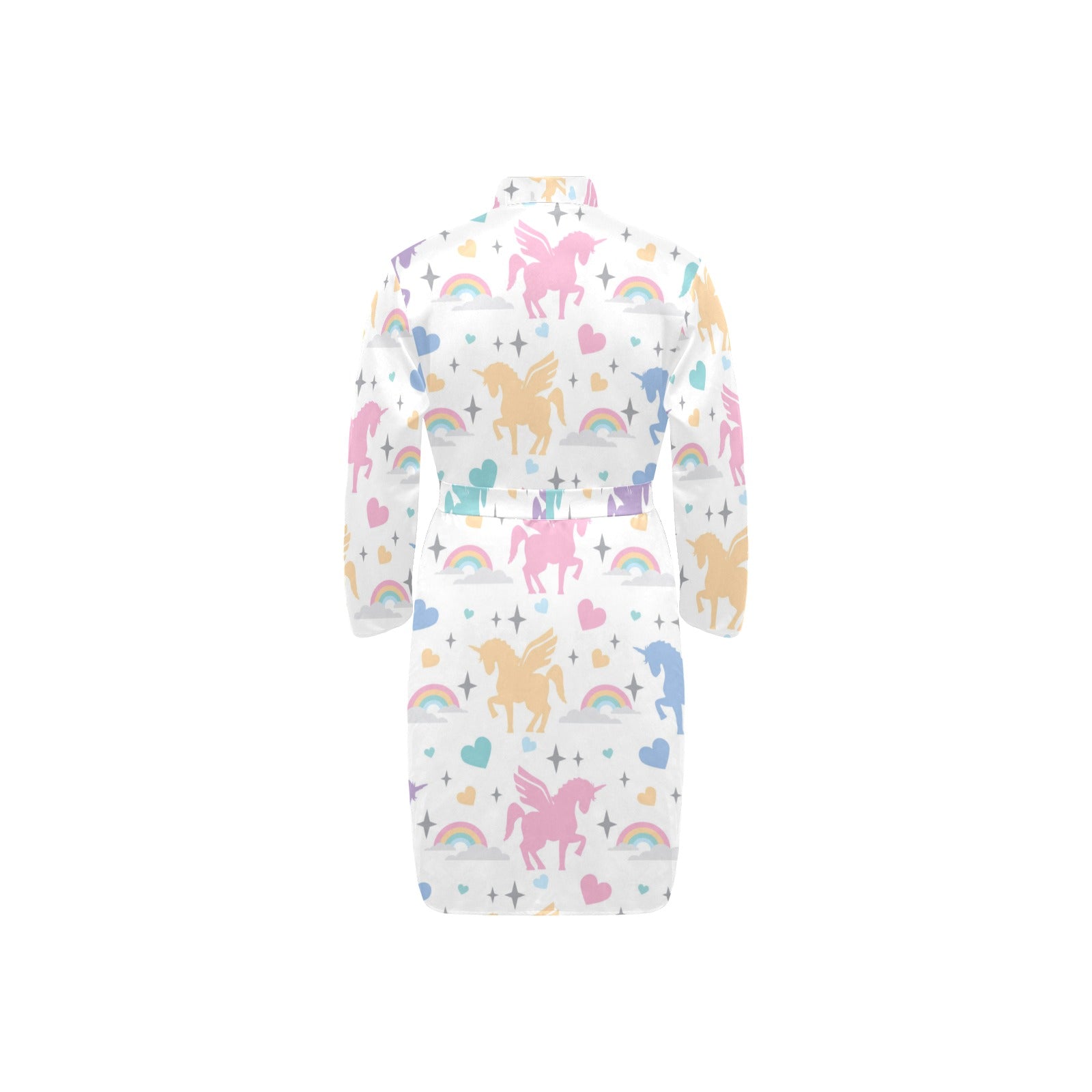 colorful unicorn rainbow heart pattern Men's Long Sleeve Belted Night Robe