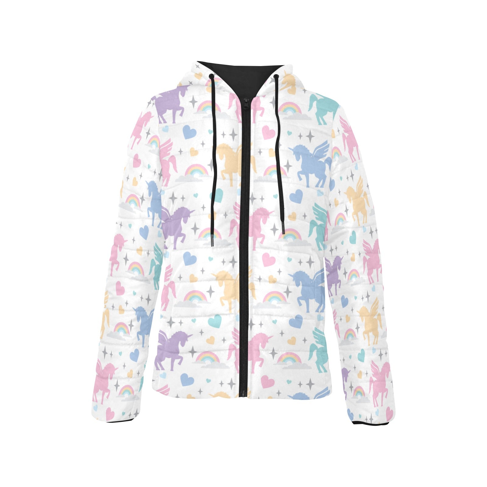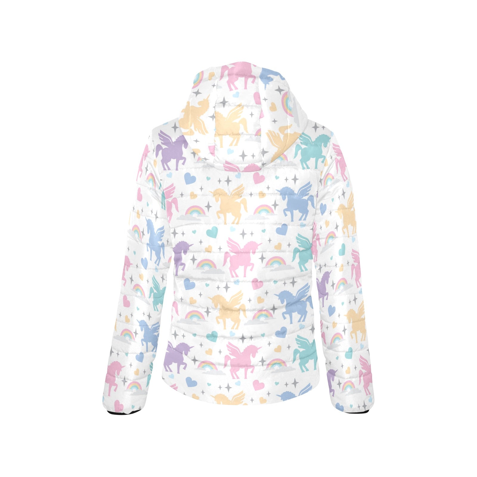 colorful unicorn rainbow heart pattern Women's Padded Hooded Jacket