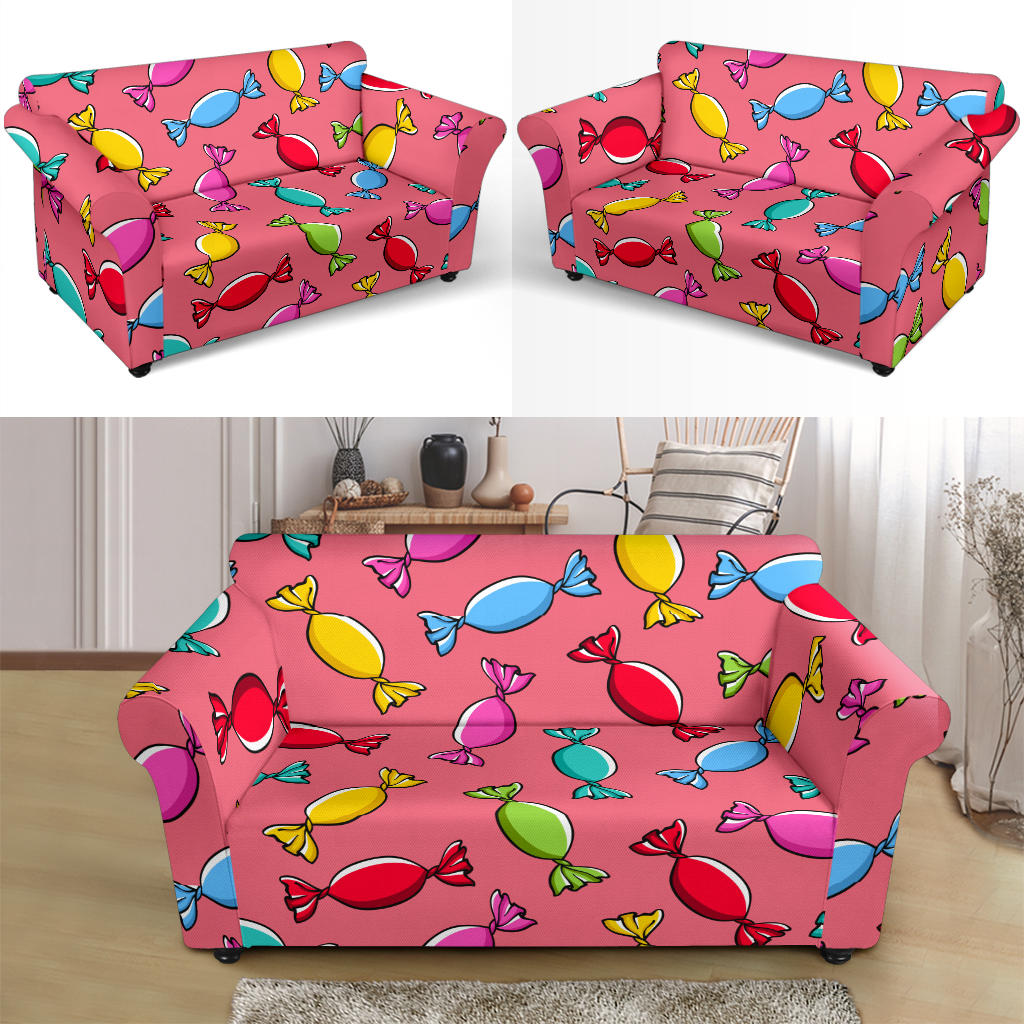 Colorful Wrapped Candy Pattern Loveseat Couch Slipcover