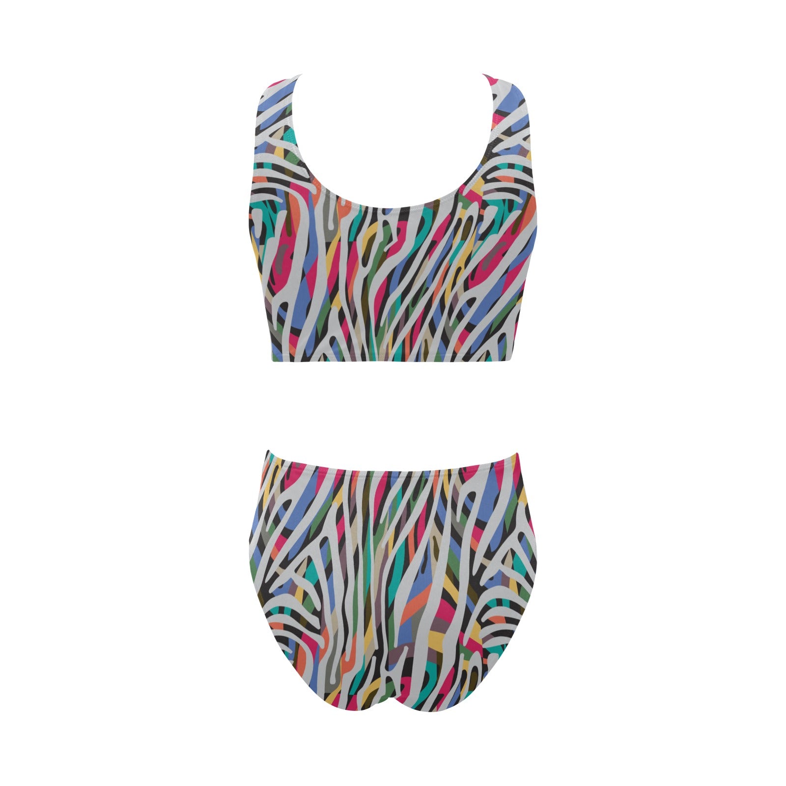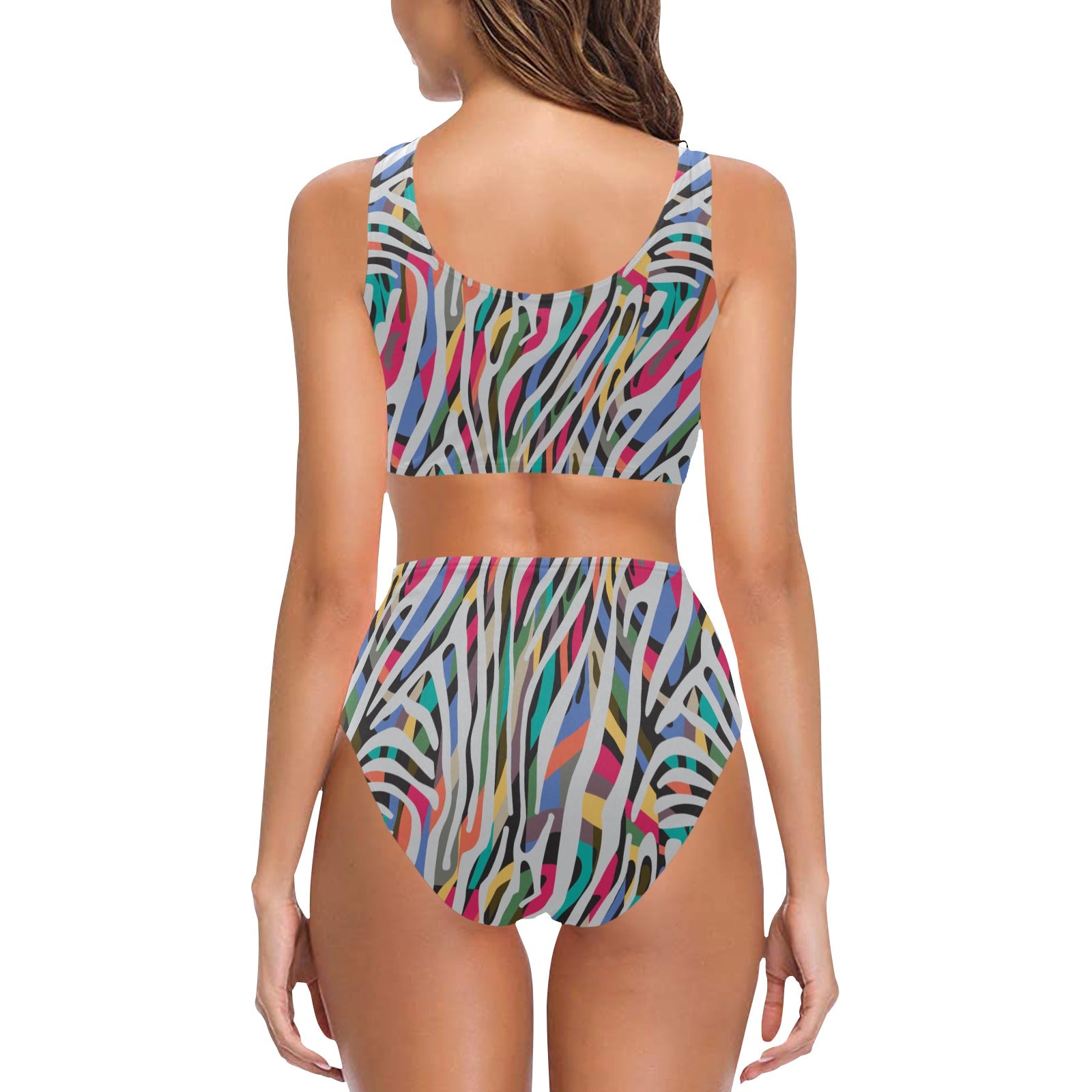 Colorful zebra skin pattern Chest Bowknot High Waisted Bikini Swimsuit