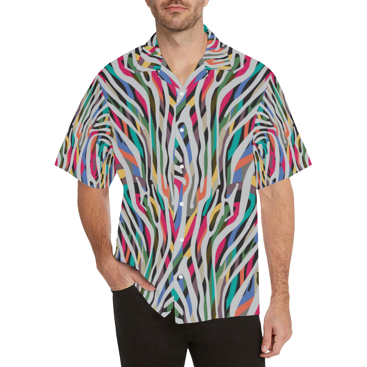 Colorful zebra skin pattern Men's All Over Print Hawaiian Shirt is a uniqued design and limited item. It made to order, hand printed, and sewn with love in our factory.