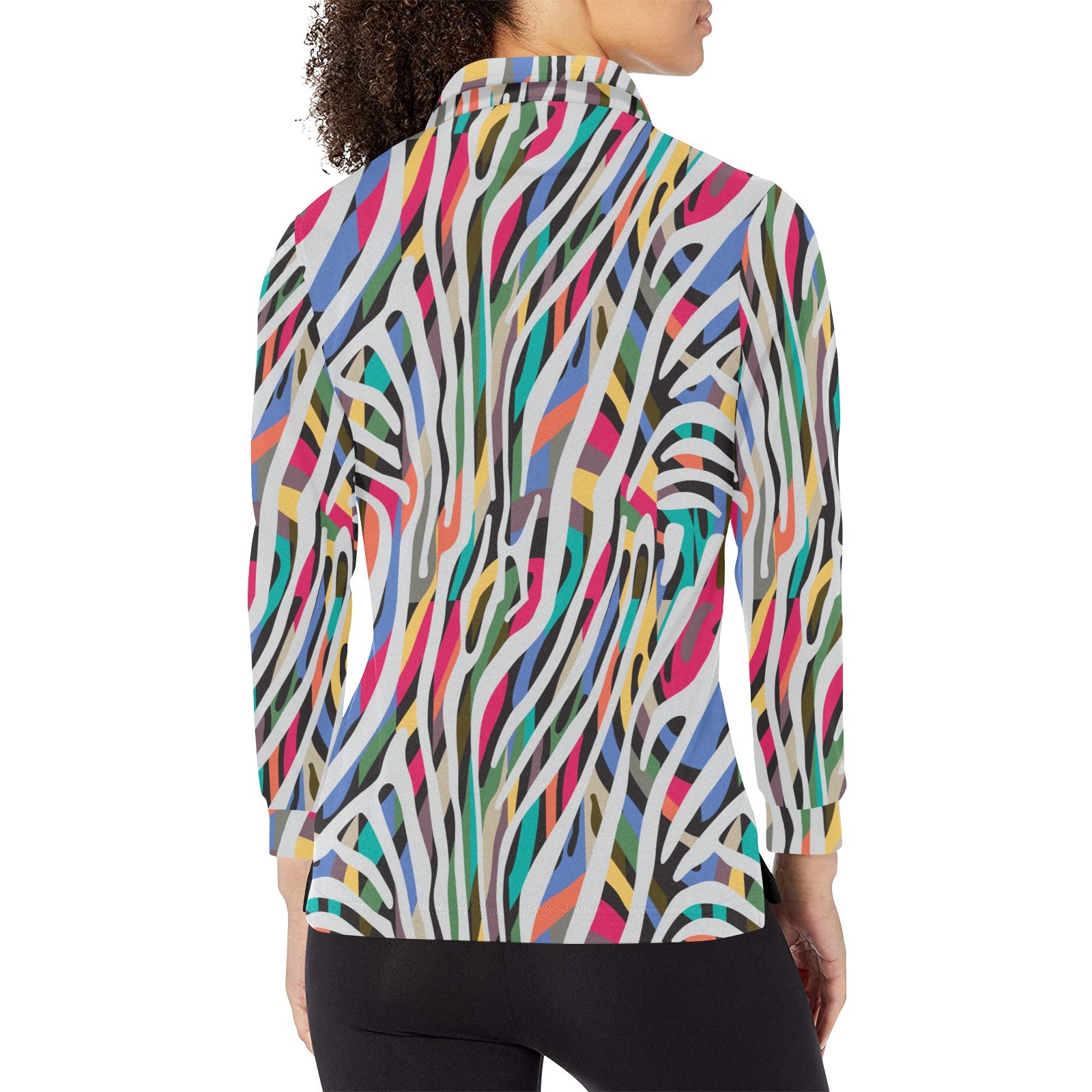 Colorful zebra skin pattern Women's Long Sleeve Polo Shirt