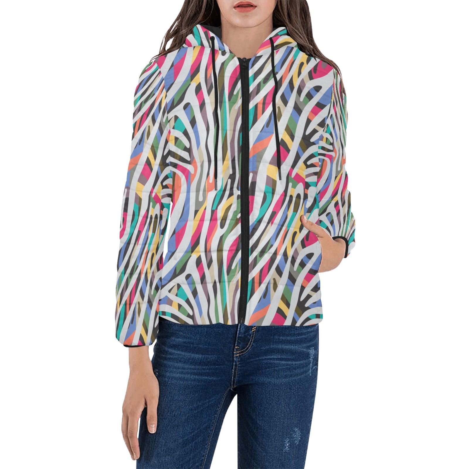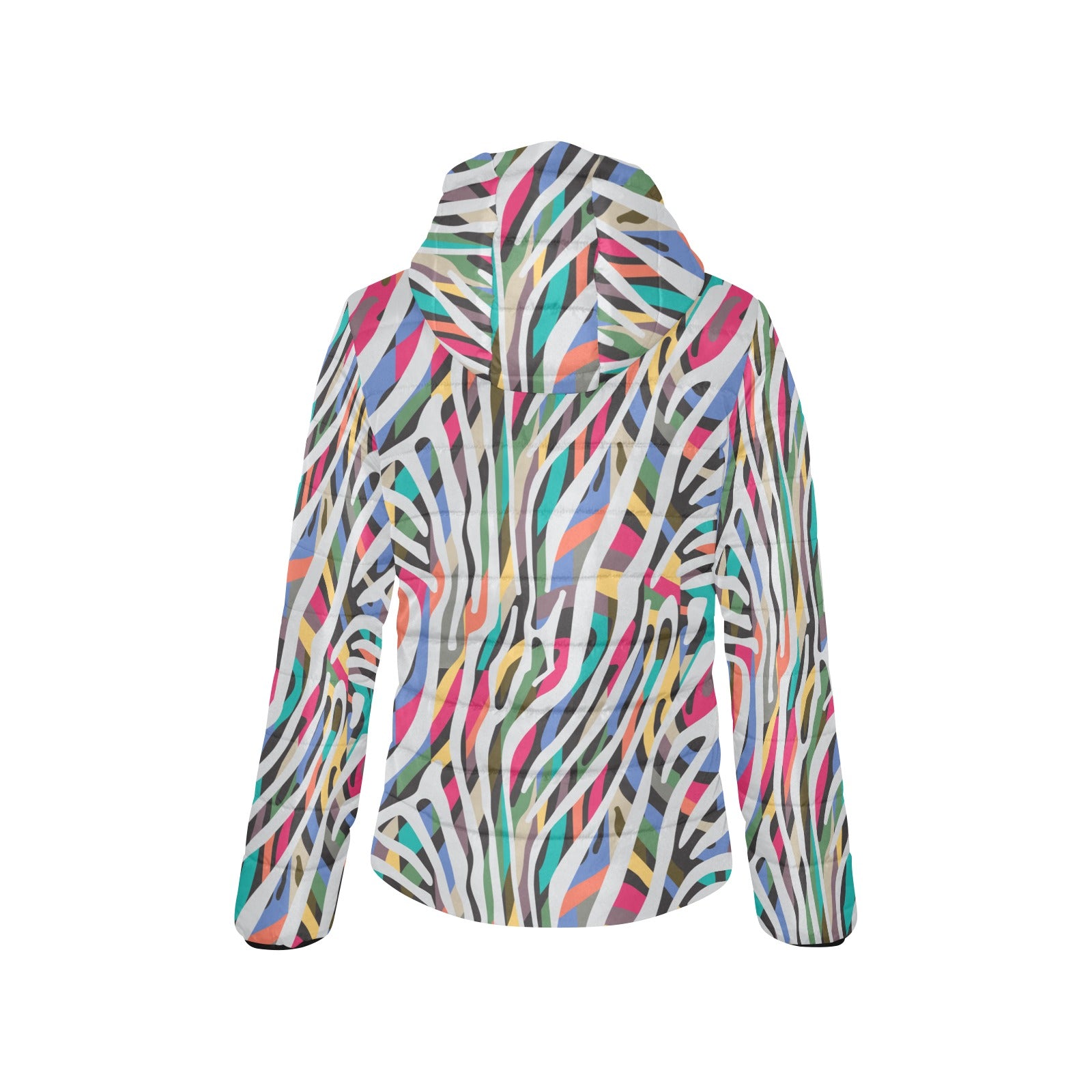 Colorful zebra skin pattern Women's Padded Hooded Jacket
