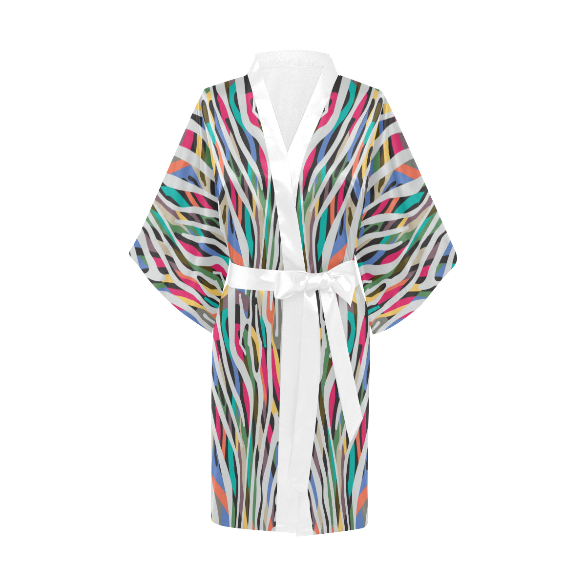 Colorful zebra skin pattern Women's Short Kimono Robe