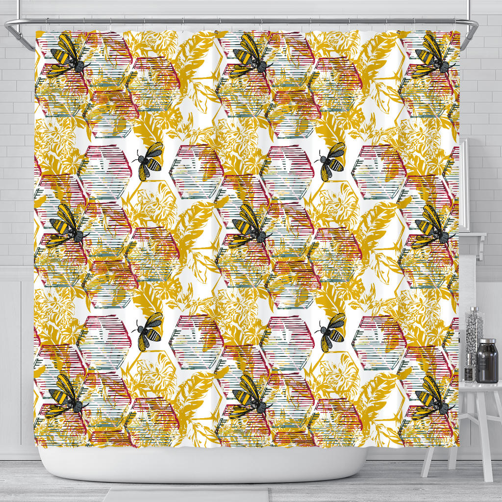Cool Bee honeycomb leaves pattern Shower Curtain is a uniqued design and limited item. It made to order, hand printed, and sewn with love in our factory.
