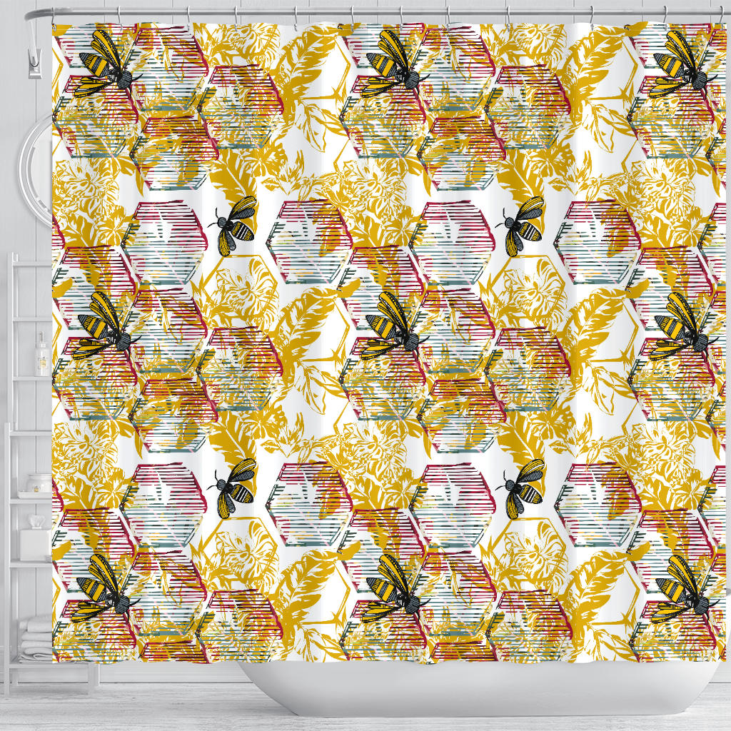 Cool Bee Honeycomb Leaves Pattern Shower Curtain Fulfilled In US
