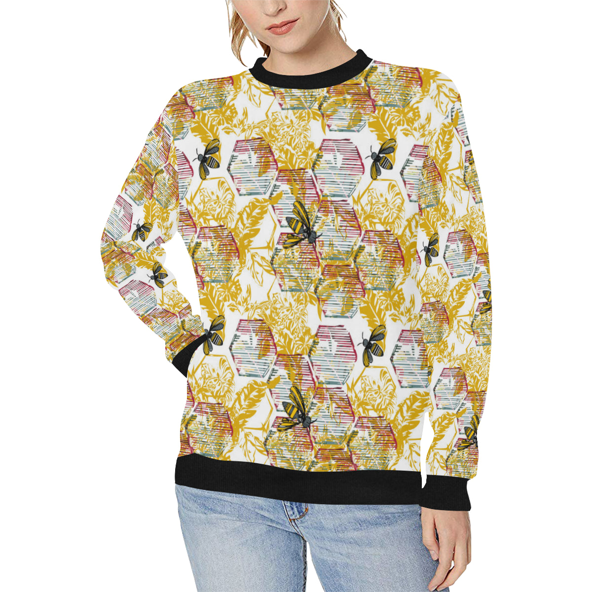 Cool Bee honeycomb leaves pattern Women's Crew Neck Sweatshirt