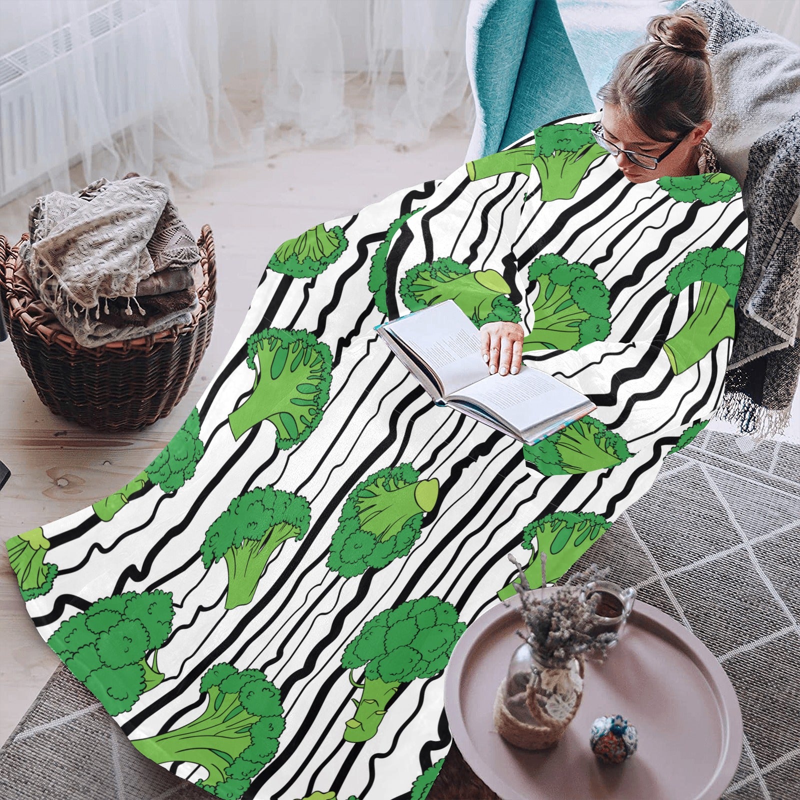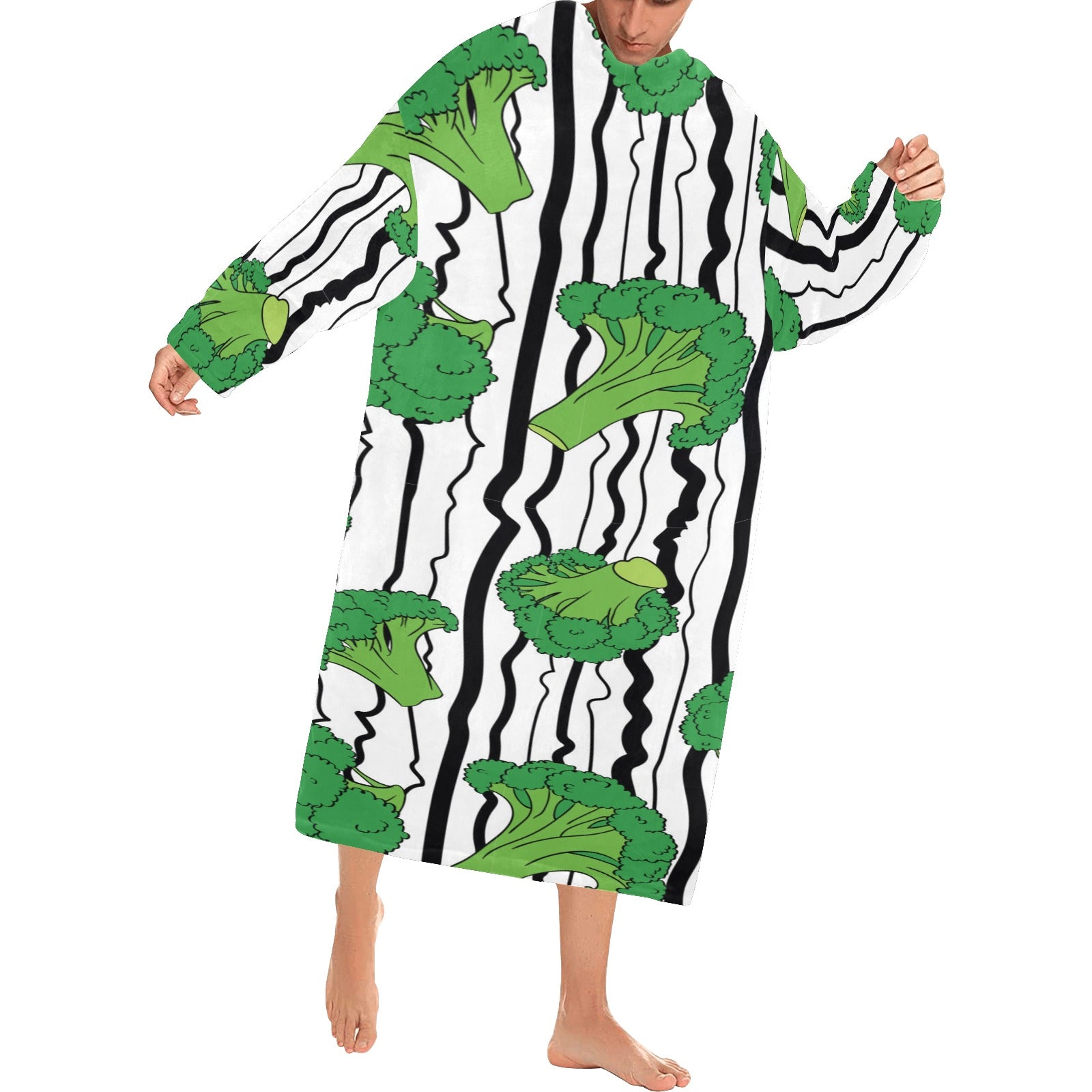 Cool Broccoli pattern Blanket Robe with Sleeves