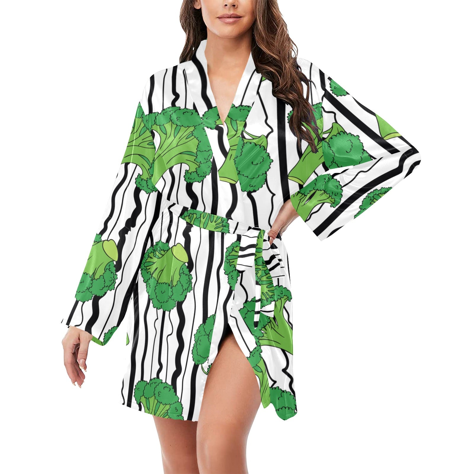 Cool Broccoli pattern Women's Long Sleeve Belted Night Robe