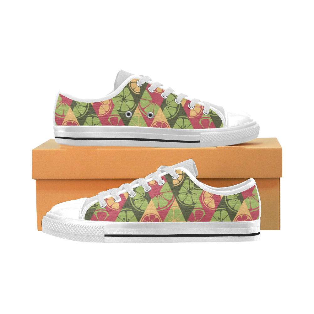 Cool Geometric lime pattern Men's Low Top Canvas Shoes White