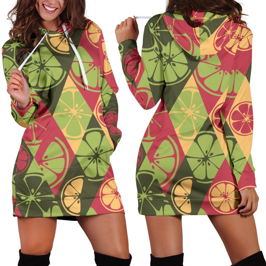 Cool Geometric Lime Pattern Women'S Hoodie Dress