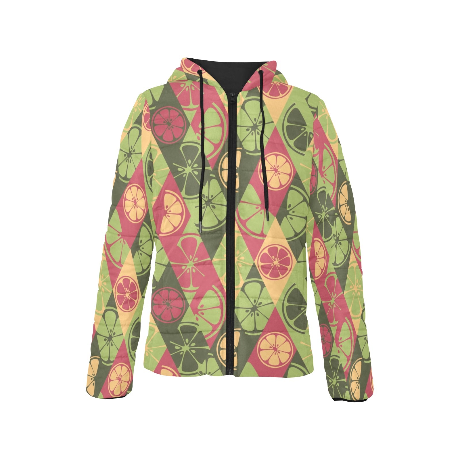 Cool Geometric lime pattern Women's Padded Hooded Jacket
