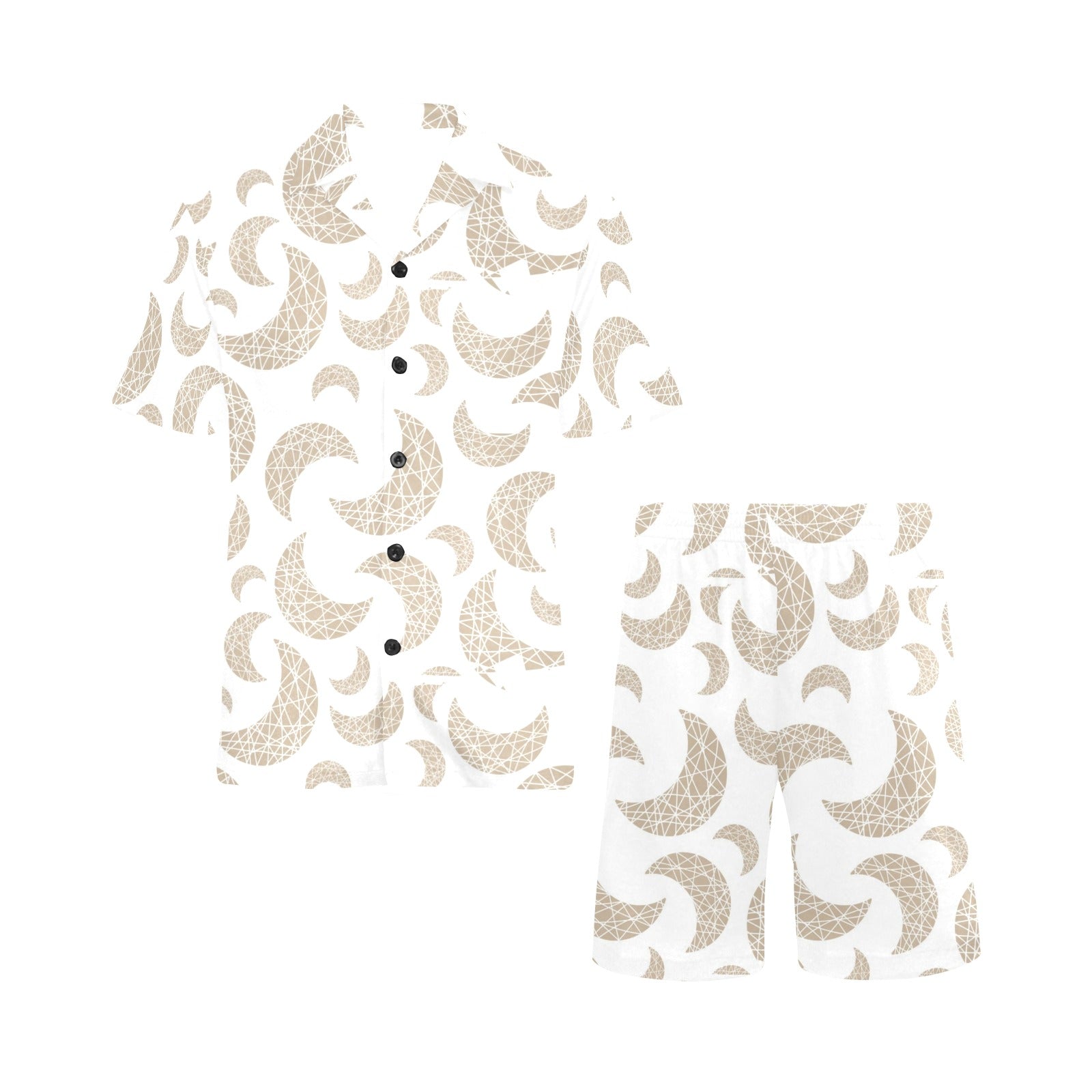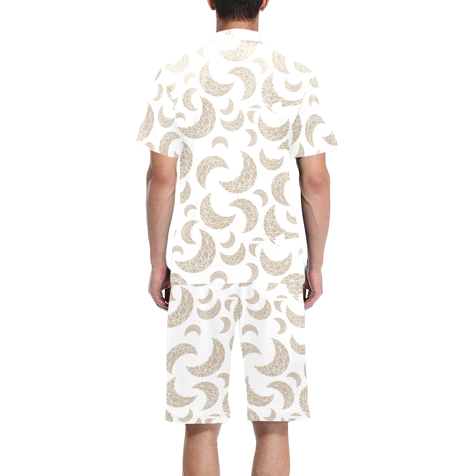 Cool gold moon abstract pattern Men's V-Neck Short Pajama Set