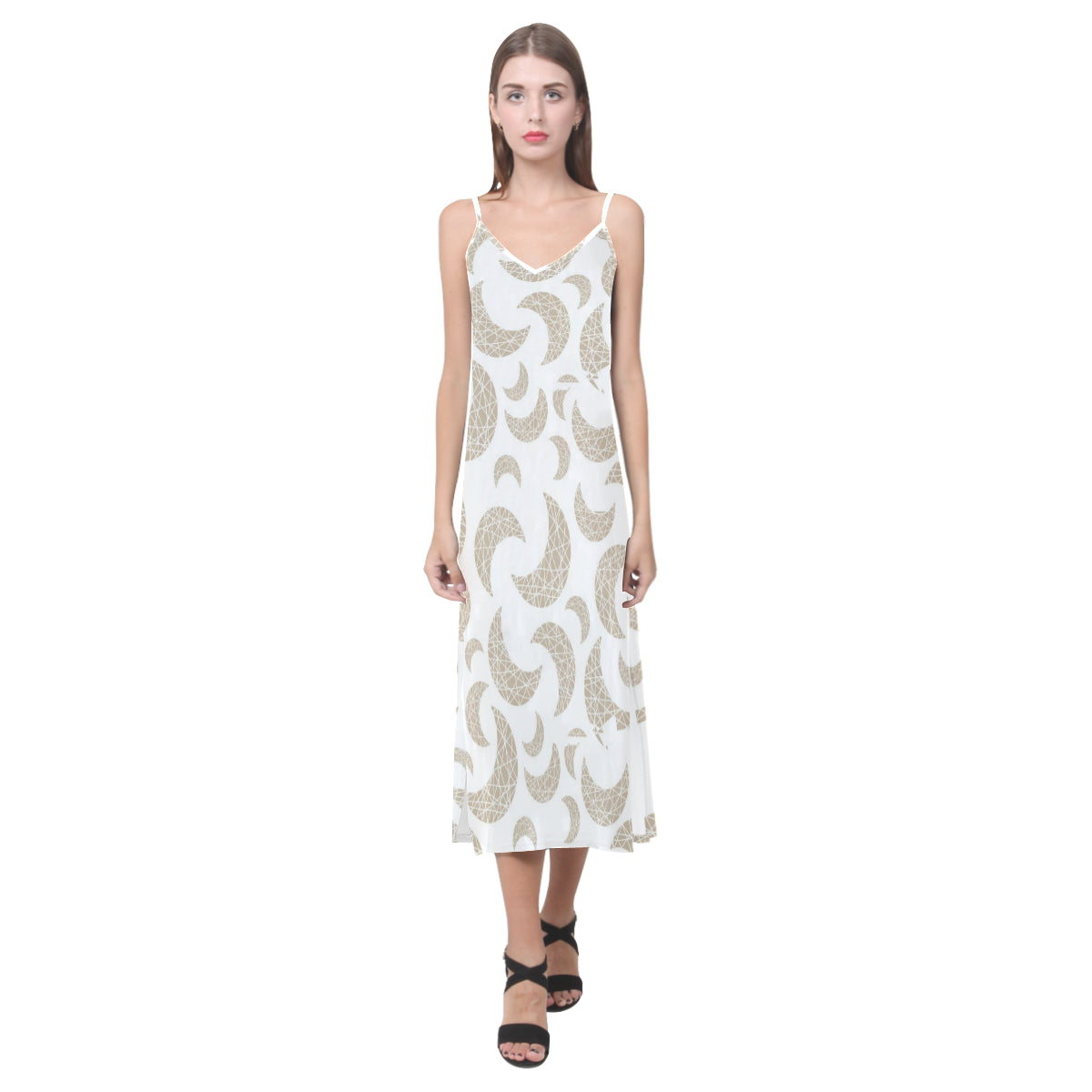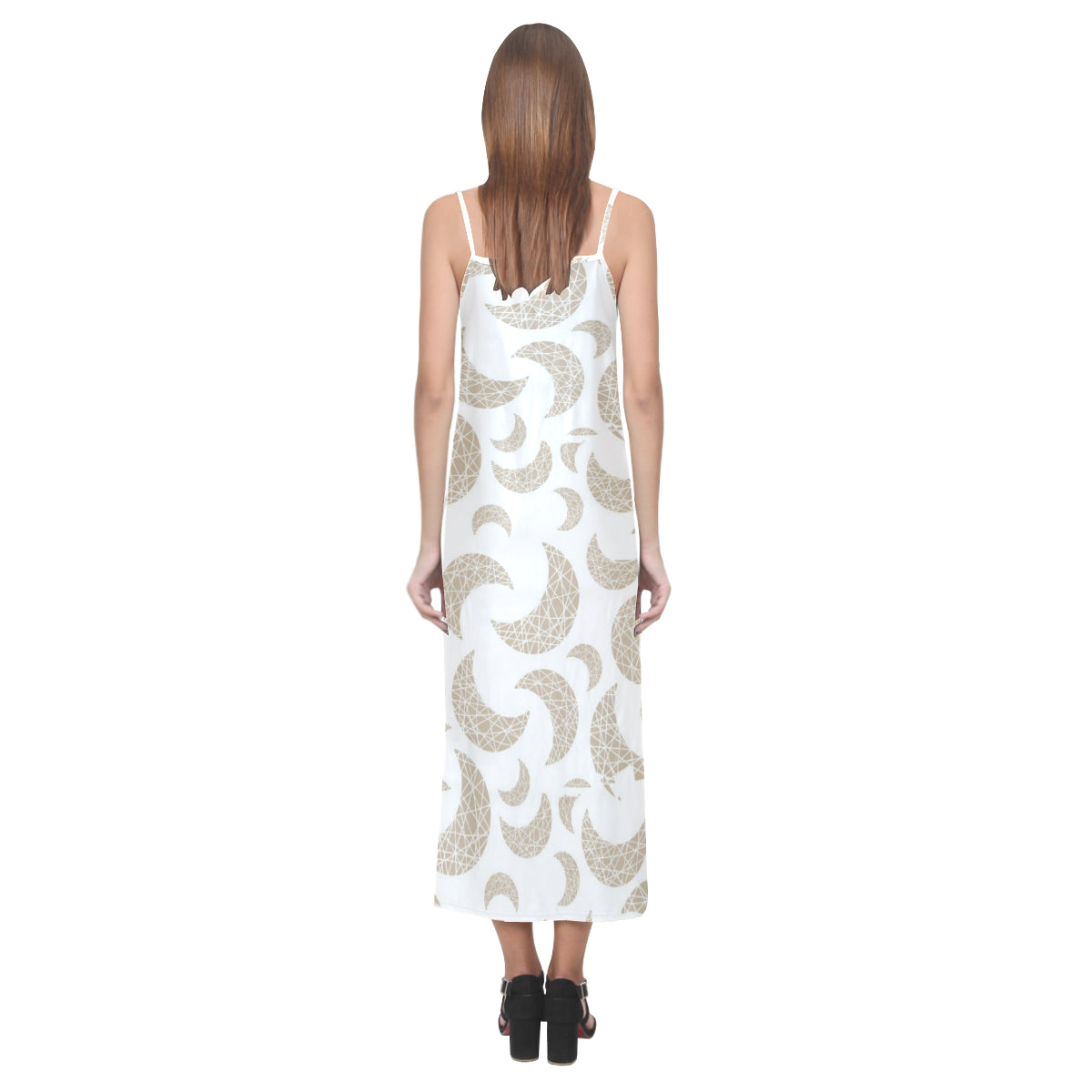 Cool gold moon abstract pattern V-Neck Open Fork Long Dress
