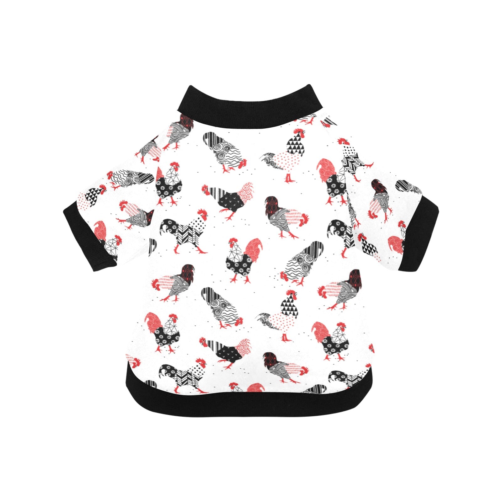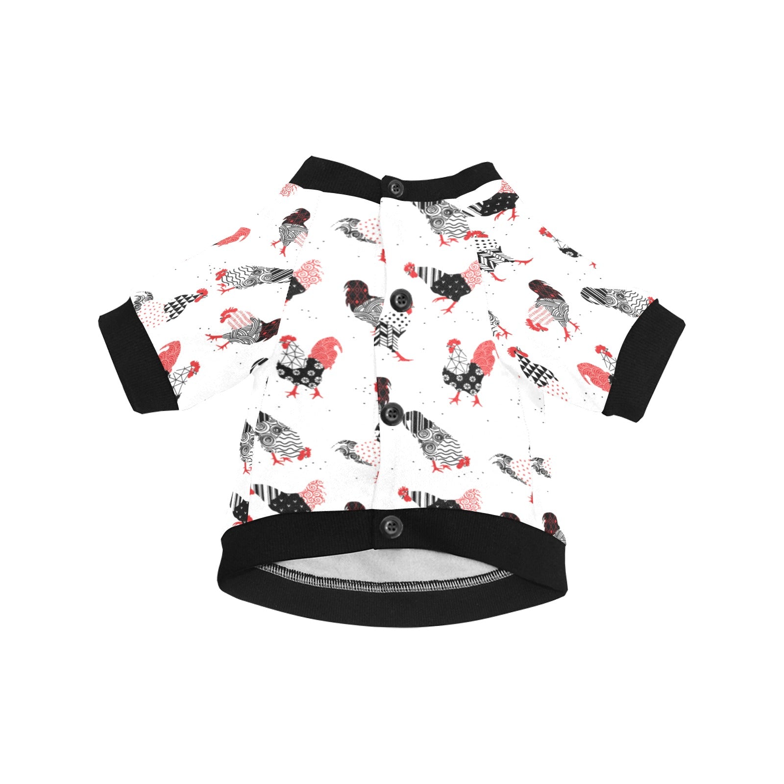 Cool rooster chicken cock floral ornament backgrou All Over Print Pet Dog Round Neck Fuzzy Shirt