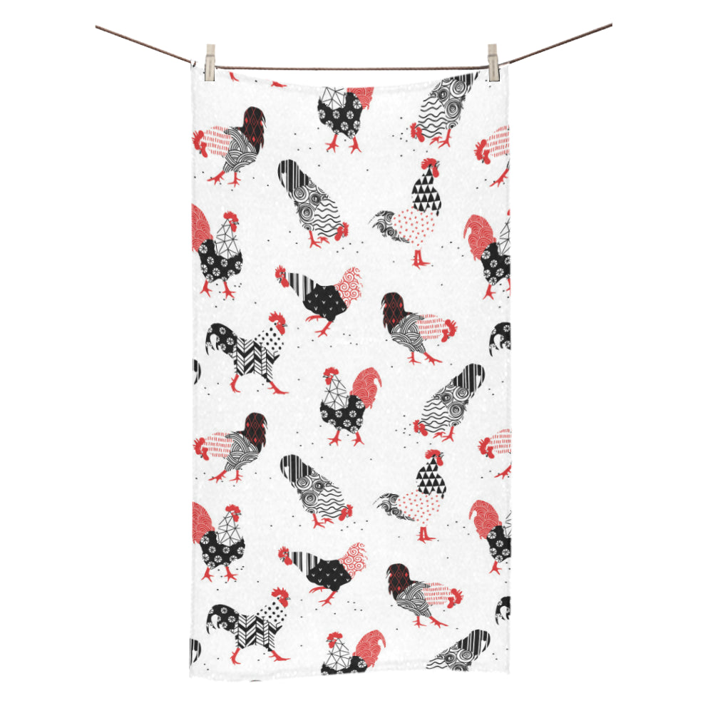 Cool rooster chicken cock floral ornament backgrou Bath Towel 30"x56" is a uniqued design and limited item. It made to order, hand printed, and sewn with love in our factory.