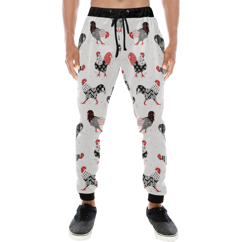 Cool rooster chicken cock floral ornament backgrou Unisex Casual Sweatpants