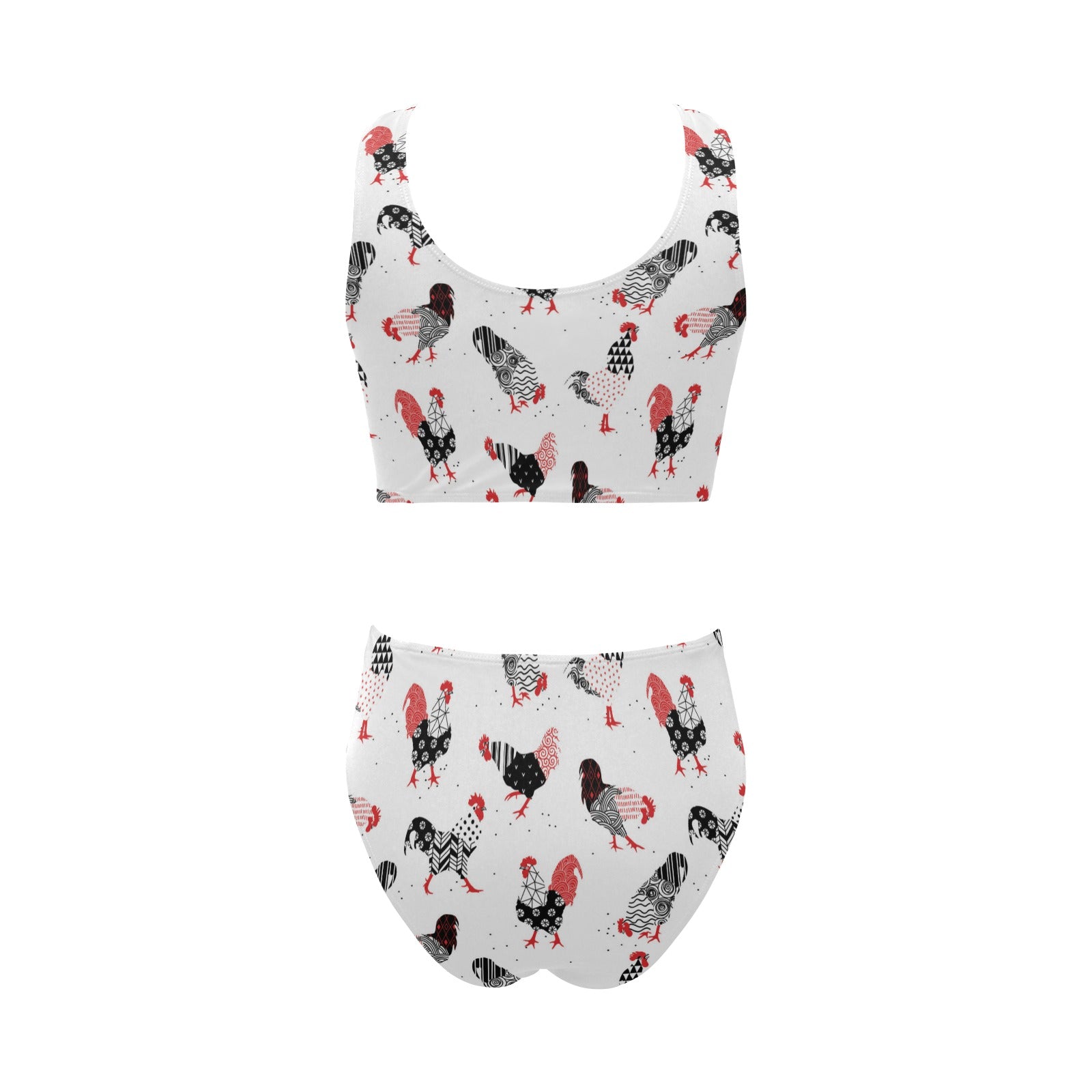 Cool rooster chicken cock floral ornament backgrou Chest Bowknot High Waisted Bikini Swimsuit