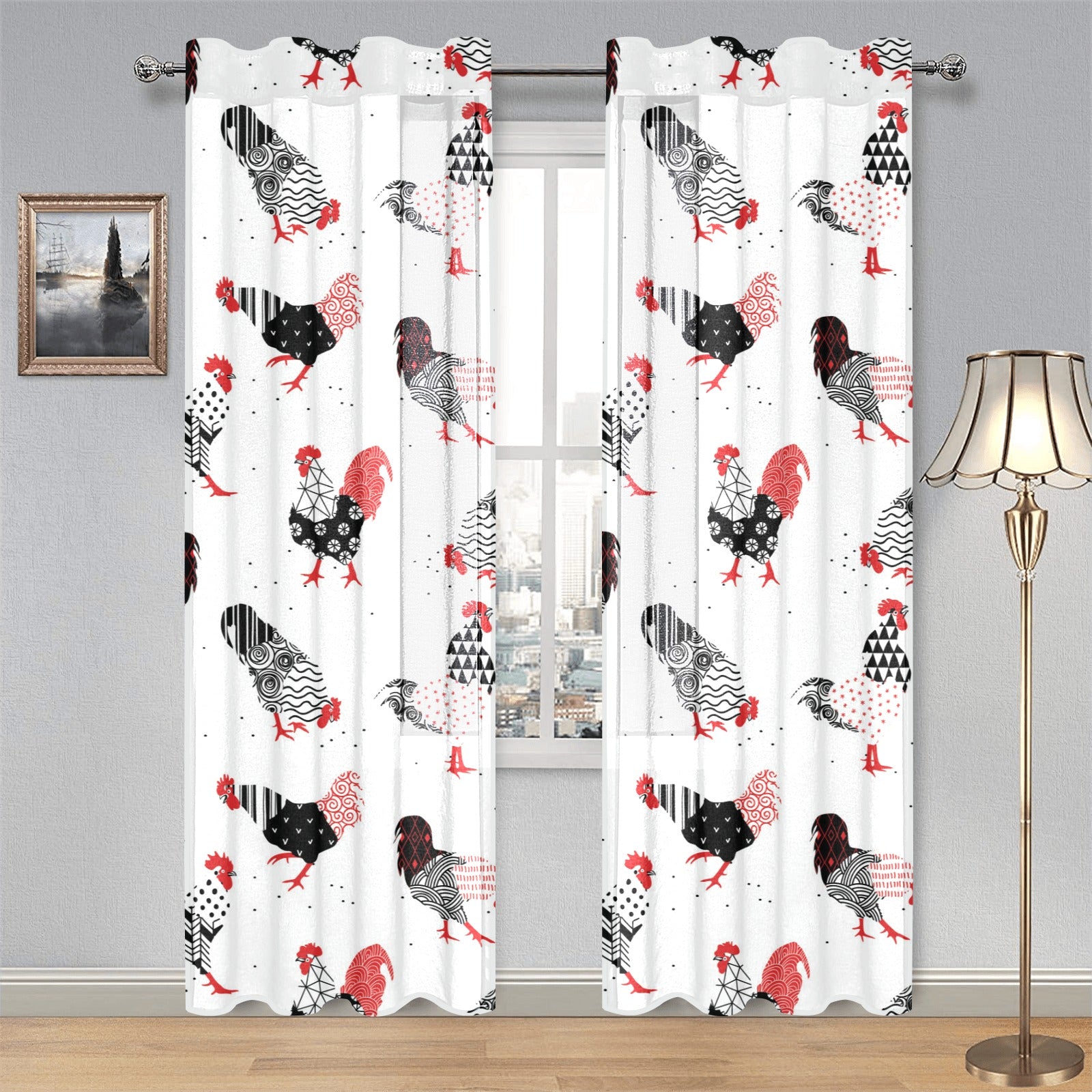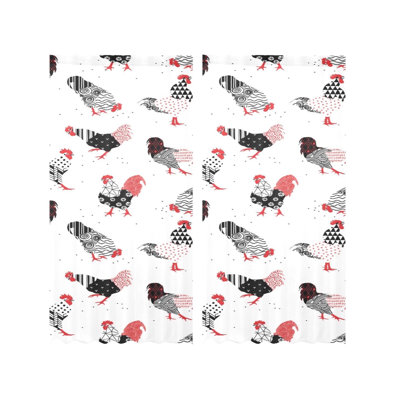 Cool rooster chicken cock floral ornament backgrou Gauze Curtain