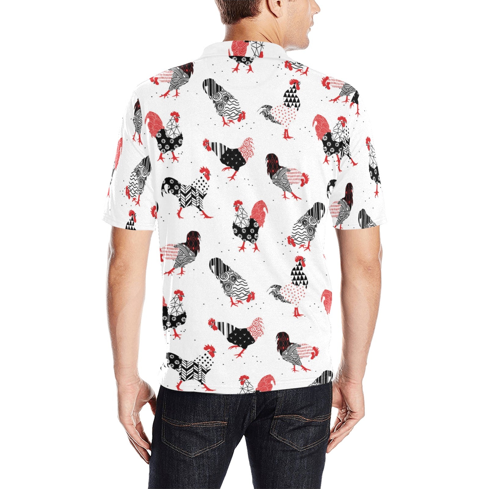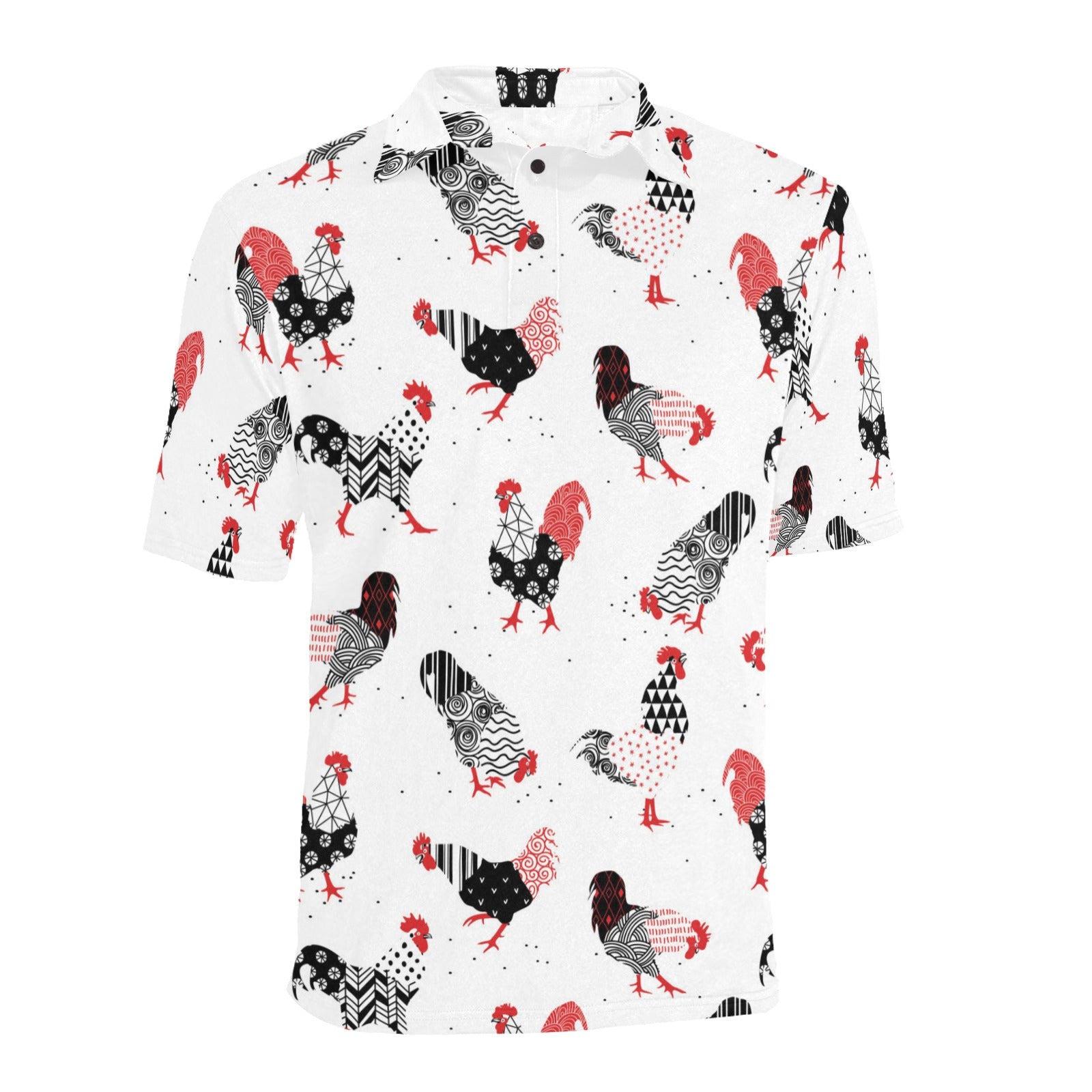 Cool rooster chicken cock floral ornament backgrou Men's All Over Print Polo Shirt