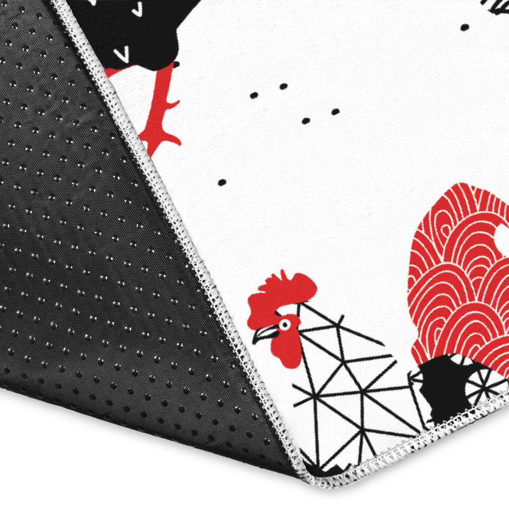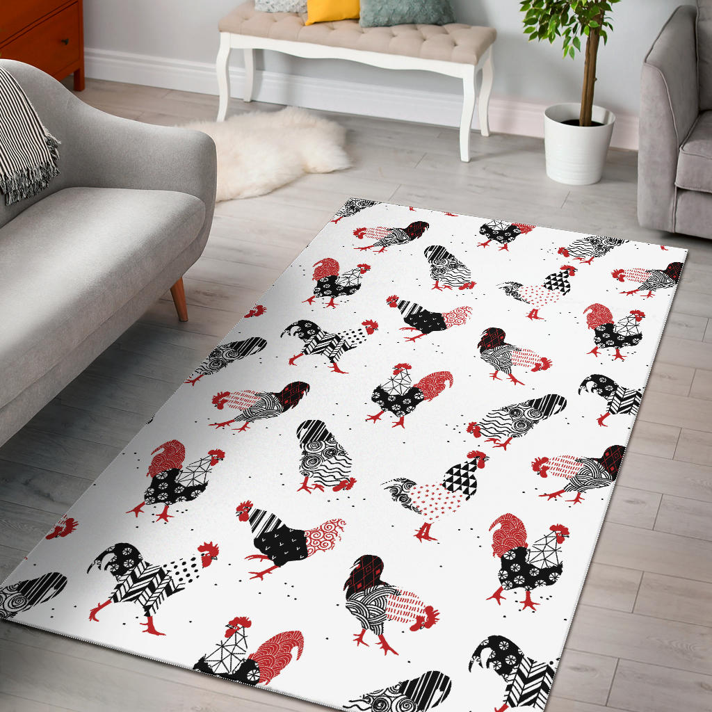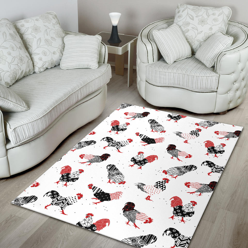 Cool rooster chicken cock floral ornament background Area Rug is a uniqued design and limited item. It made to order, hand printed, and sewn with love in our factory.