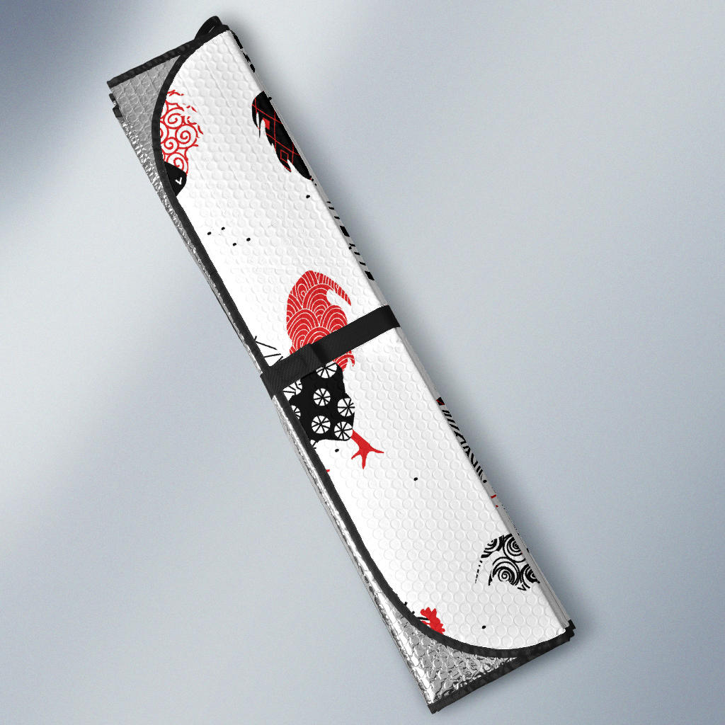 Cool Rooster Chicken Cock Floral Ornament Background Car Sun Shade