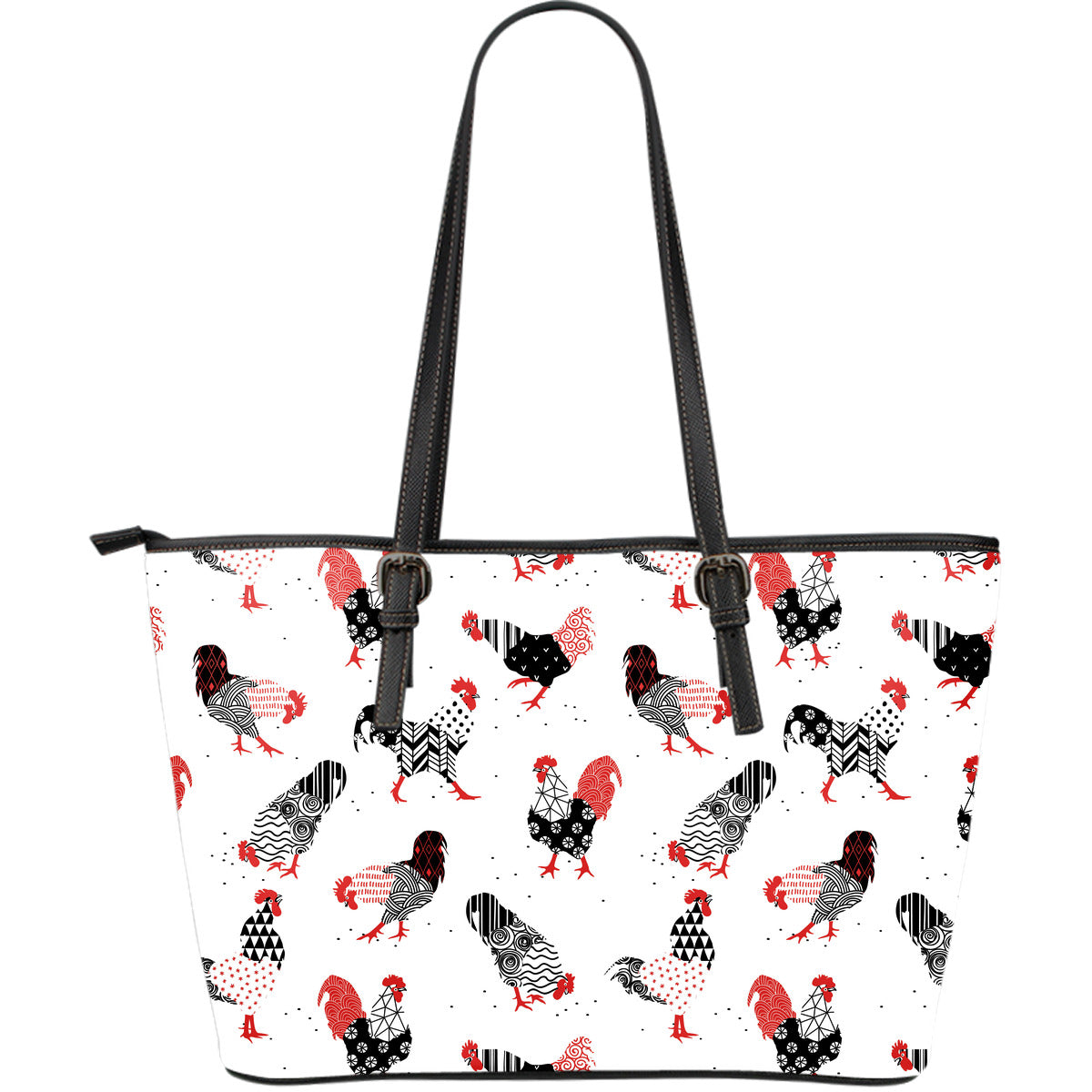 Cool rooster chicken cock floral ornament background Large Leather Tote Bag is a uniqued design and limited item. It made to order, hand printed, and sewn with love in our factory.