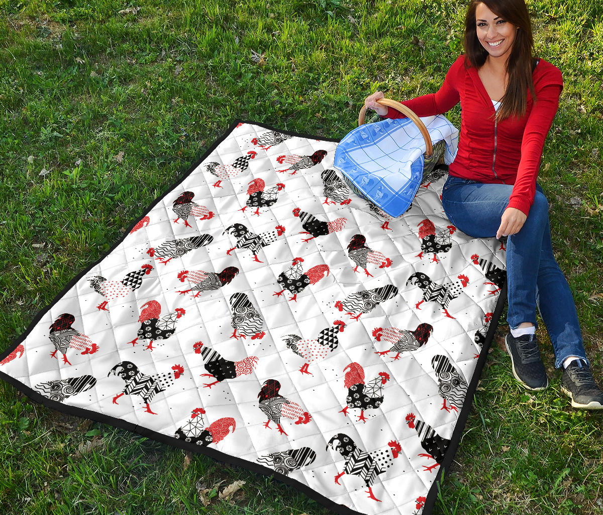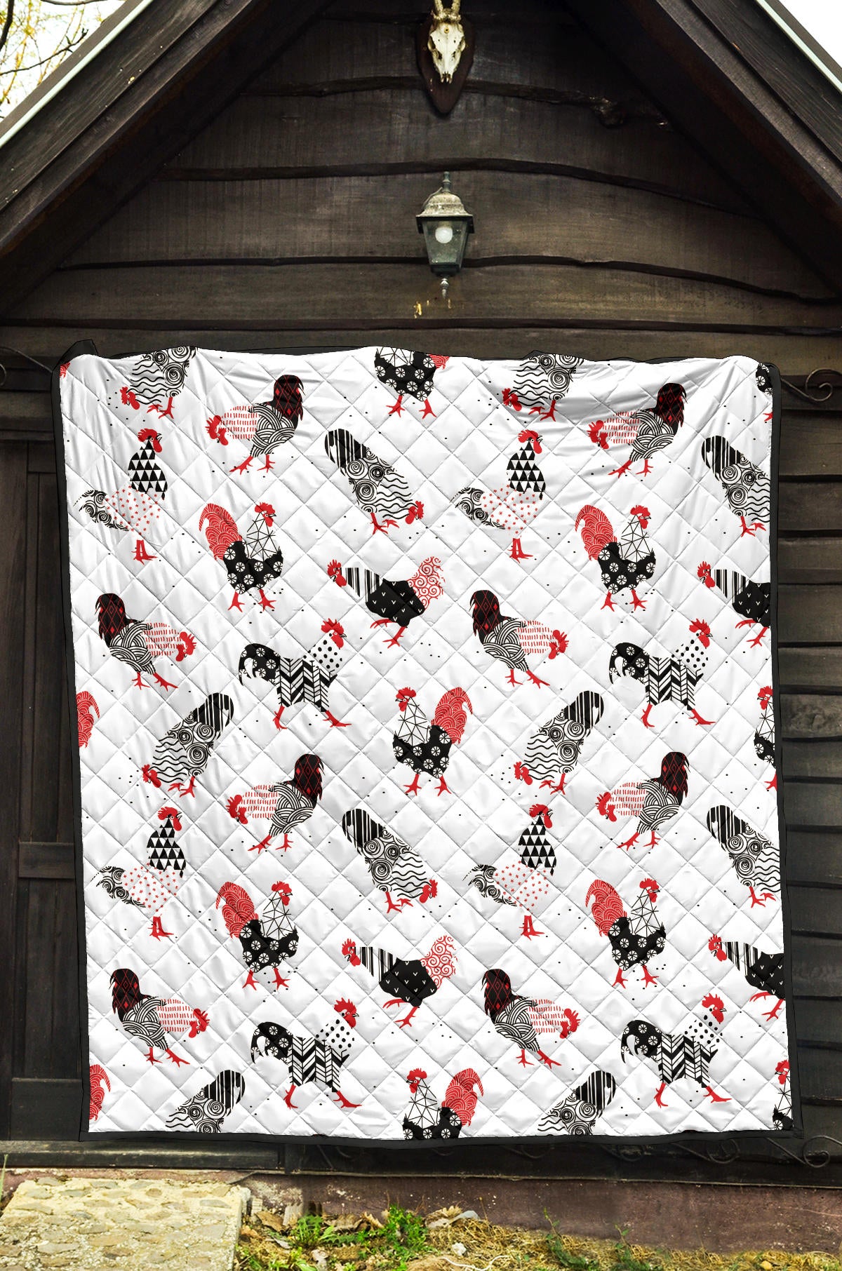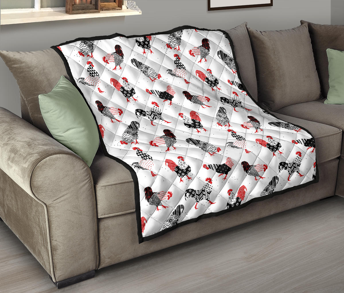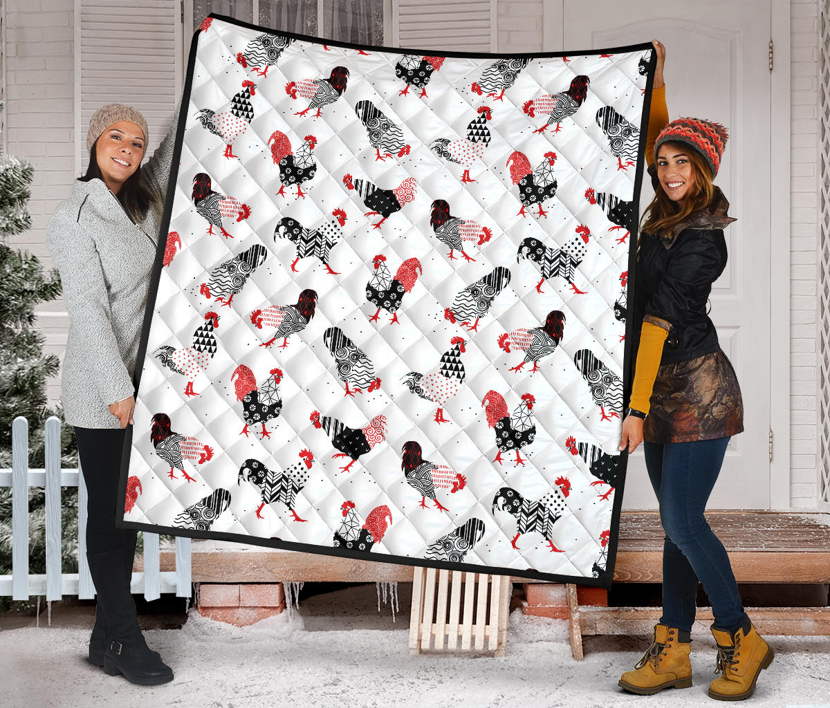 Cool Rooster Chicken Cock Floral Ornament Background Premium Quilt is a uniqued design and limited item. It made to order, hand printed, and sewn with love in our factory.